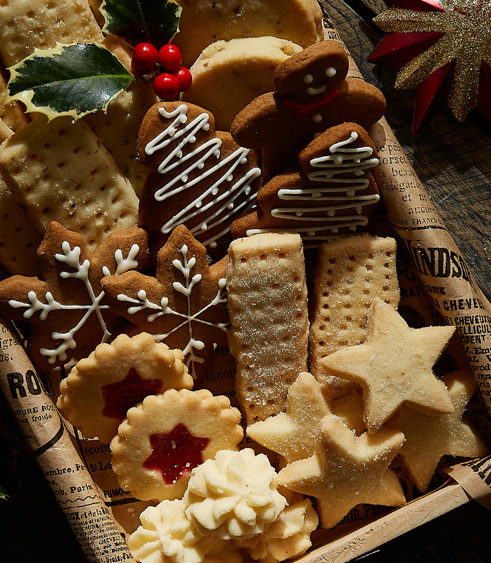 Festive Cookies Assortment Gift Box Celebrate the holidays with our Festive Cookie Assortment Gift Box, featuring buttery shortbread, jam-filled cookies, crispy gingerbread men, and sugar-dusted stars. Beautifully packaged and perfect for sharing, it’s a sweet gift that brings holiday cheer to family and friends.What Inside :Charlotte Shortbread Cookies / 5 Pcs.Charlotte Shortbread Cookies ( Star ) / 3 Pcs.Charlotte Shortbread Cookies ( Stick ) / 7 Pcs.Charlotte Gingerbread / 2 Pcs.Charlotte Gingerbread ( Snow ) / 3 Pcs.Charlotte Gingerbread ( Tree ) / 1 Pc.Ribbon & DecorationWooden Box 25*14*3.5cm.Main Ingredients :Gingerbread : Unsalted butter, Brown sugar, Egg, Golden syrup, All-purpose flour, Baking soda, Ground ginger, Allspice.Shortbread Cookies : Butter, All-Purpose Flour, Salt, Sugar.Shortbread Star Cookies (Chocolate) : All-Purpose Flour, Granulated Sugar, Unsalted Butter, Salt, Water, Butter Flavor, Dark Chocolate, White Chocolate.Jammy Shortbread Star Cookies : All-Purpose Flour, Granulated Sugar, Unsalted Butter, Salt, Water, Butter Flavor, Strawberry Jam.Gifts For The OccasionChristmas Gift, Holiday Gifts, Christmas Bakery Gift, Christmas Gifts For Friends, Congratulation Gift, New Year Gift, Thank You Gift, Lucky Gift, Christmas Season Festival. *** Due to inconsistent market conditions, we might replace any flowers with another of equivalent value in view of stock availability without prior notice.