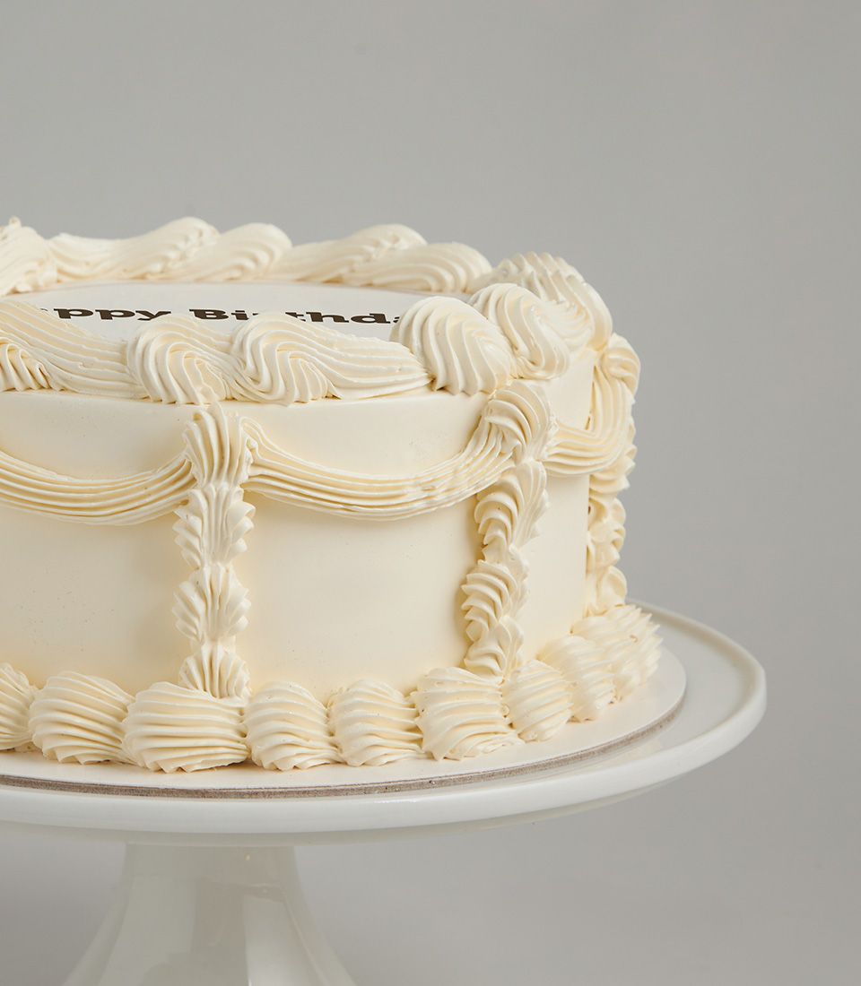 Classic Cream Border Cake The Classic Cream Border Cake features royal vanilla sponge layers with elegant vintage cream piping and a stylish “Happy Birthday” wafer topper. A perfect centrepiece for nostalgic and elegant birthday celebrations.