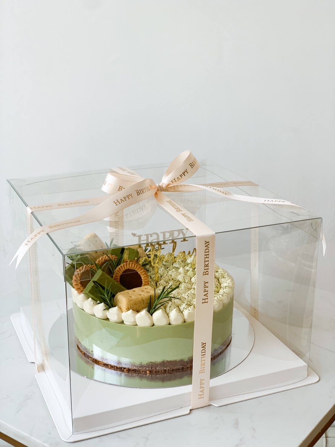 Premium Cake Box - Ribbon Bow - Cake Topper - Greeting Card - Candle Set - Cake Knife