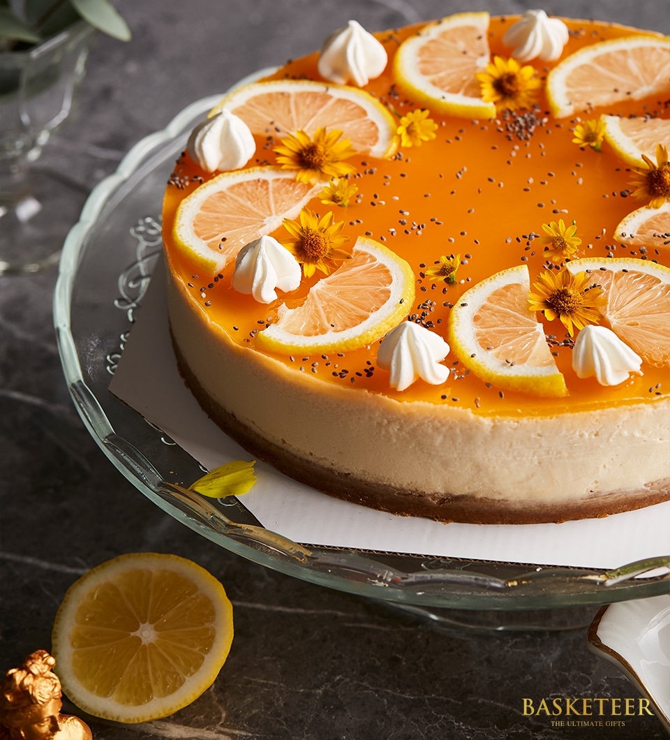 Passion Fruit Cheese Cake Indulge in our best-selling Passion Fruit Cheesecake! This moist cheesecake features a rich vanilla flavor, elegantly decorated with thin lemon slices, delicate whipped cream dollops, and vibrant yellow flowers. Perfect for any occasion, it's a sophisticated dessert that will impress and delight. Order now to experience this exquisite treat!