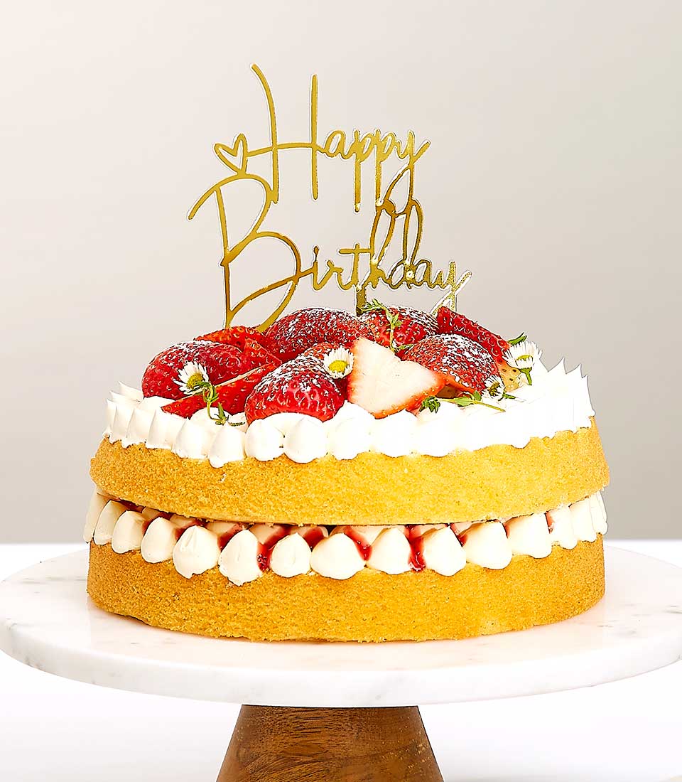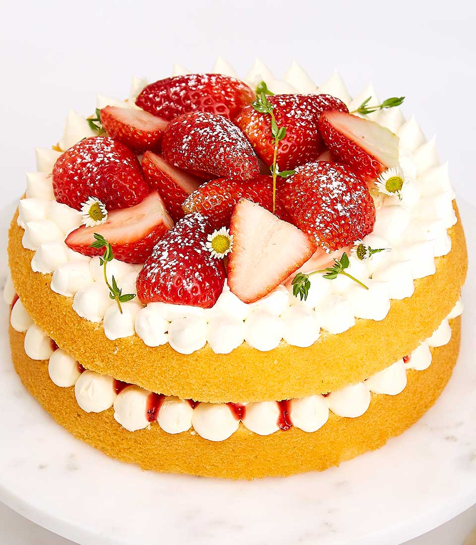 Summery Strawberry Cream Cake The Summery Strawberry Cream Cake, one of our best sellers, is a moist Vanilla sponge cake filled with fresh cream and strawberry jam. Topped with sophisticated cream flavor, it's ready to garnish with fresh cream and strawberries, making it perfect for any occasion.