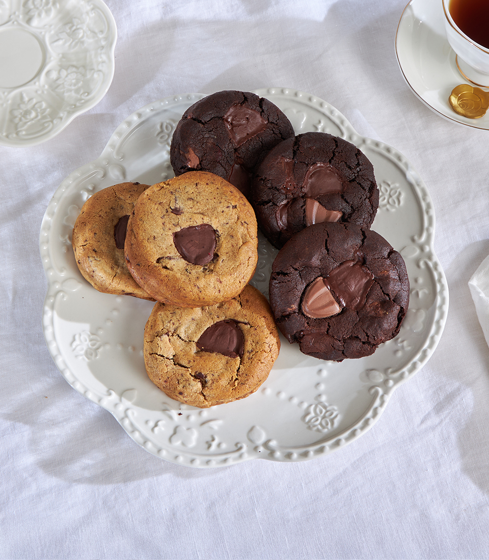 Crisp on the edges, soft in the center — our classic cookies are packed with rich milk chocolate chips for the perfect bite every time. Decadent double chocolate cookies made with cocoa, dark chocolate, and milk chocolate chips. Soft, chewy, and intensely chocolatey.