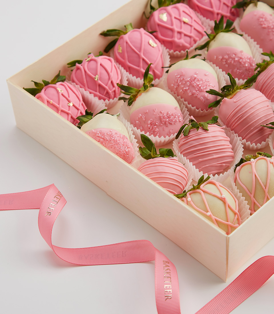 Premium Chocolate-Covered Strawberries – Perfect Gift Box This exquisite assortment of chocolate-covered strawberries is dipped in silky pink and white chocolate, decorated with delicate drizzles, sugar crystals, and gold accents. Presented in a beautiful gift box, this sweet indulgence is perfect for Valentine’s Day, anniversaries, and special celebrations.