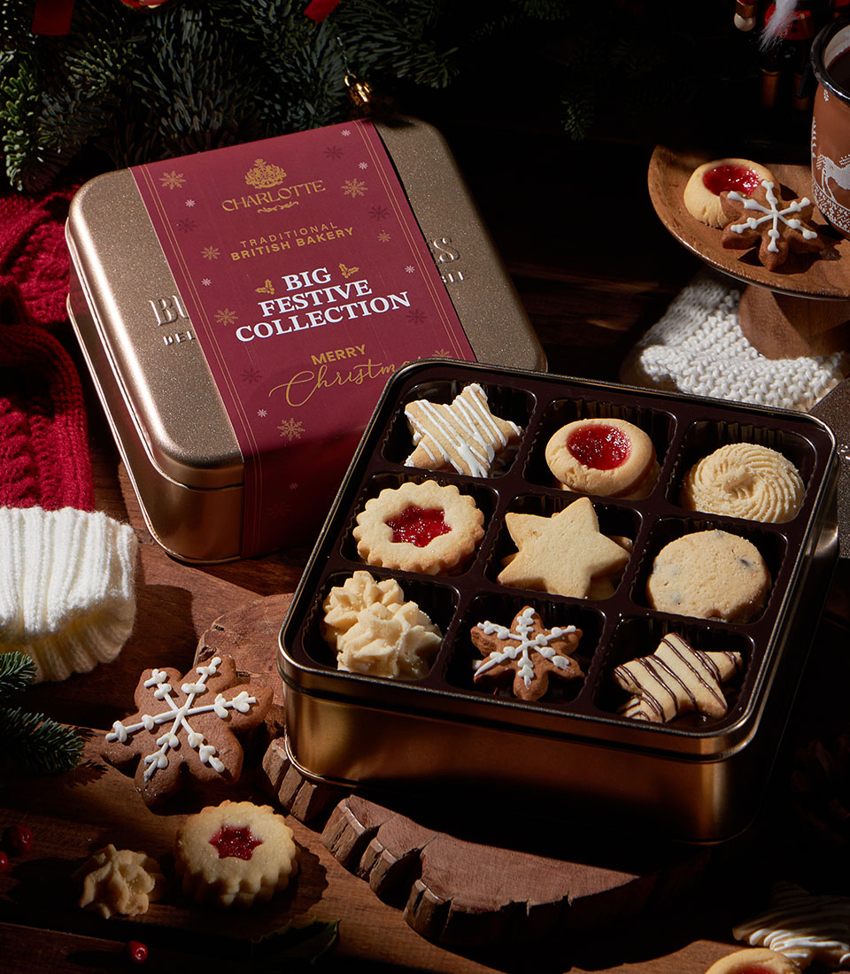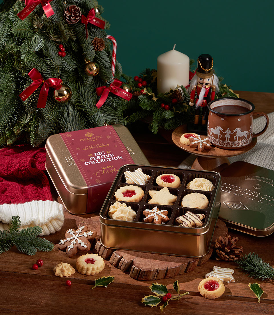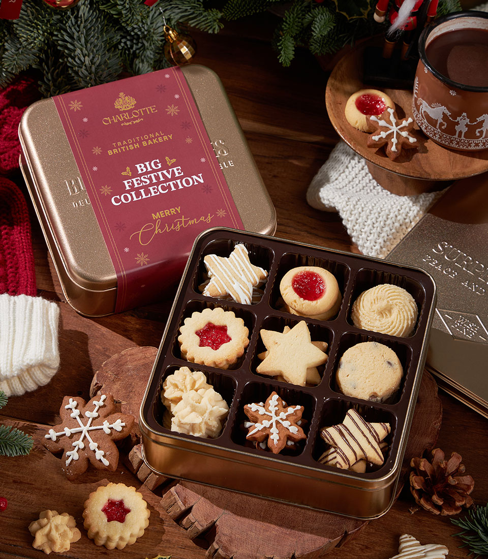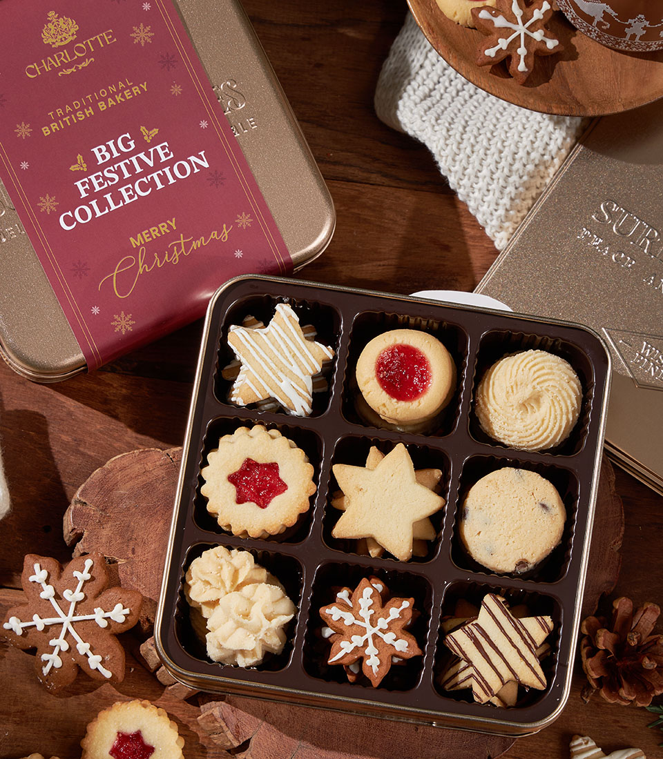 A generous festive cookie assortment featuring Charlotte's best-loved classics - thoughtfully baked and perfect for sharing during the holiday season.