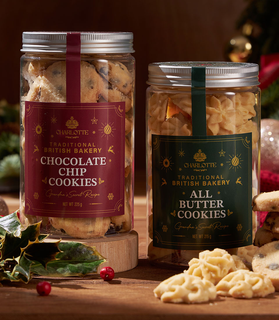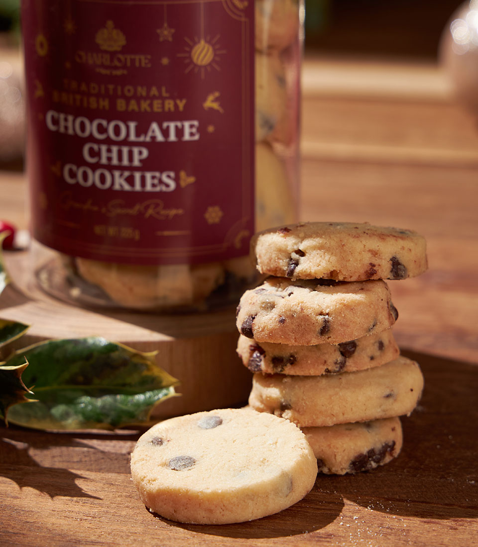 A classic British cookie selection, crafted with rich butter and inspired by Grandma’s traditional recipe. Choose between chocolate chip cookies filled with generous chocolate chunks or timeless all-butter cookies, each delivering a comforting crisp bite and a warm, homemade flavour.