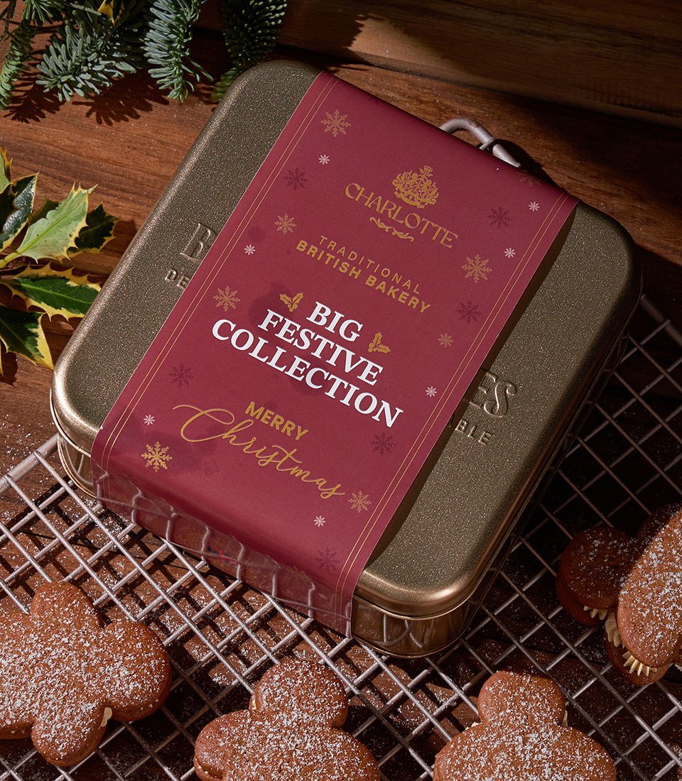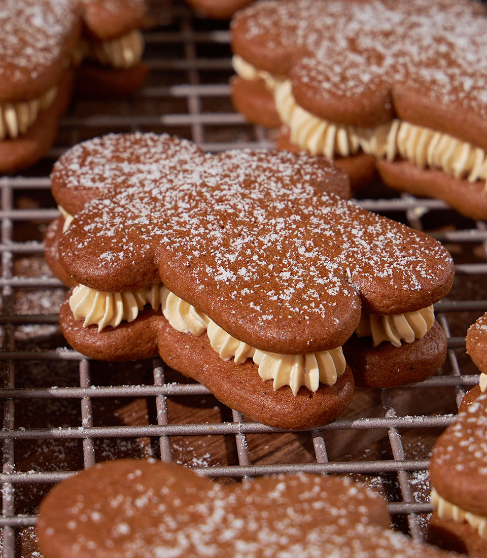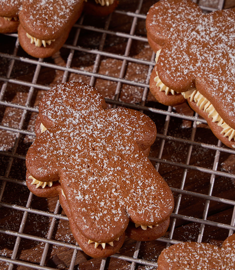 A festive box set of soft, spiced gingerbread cookies generously filled with smooth white buttercream - perfect for sharing and Christmas gifting.