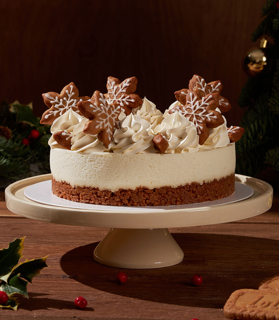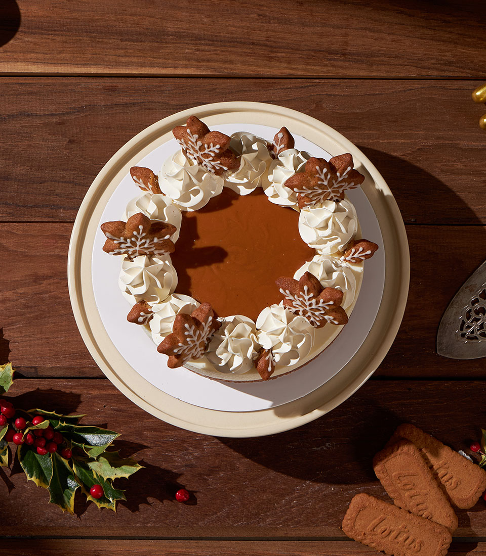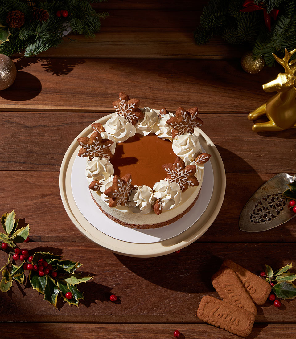 Celebrate the festive season with our Gingerbread Biscoff Christmas Celebration Cheesecake, a luxurious dessert inspired by comforting winter flavours. The cheesecake begins with a buttery Lotus Biscoff biscuit base, blended with smooth Biscoff spread for a deep caramelised sweetness.
