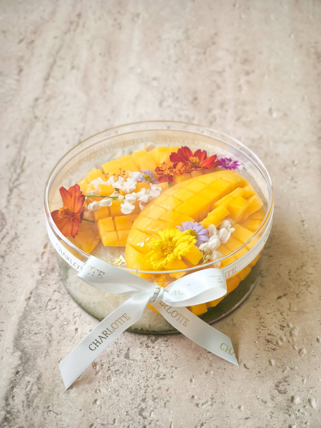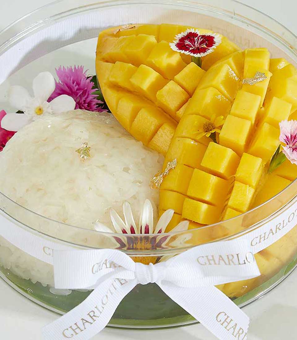 Luxury Thai Mango Sticky Rice Indulge in the authentic flavors of Thailand with this luxurious Mango Sticky Rice Gift Set. Enjoy sweet mangoes paired with perfectly cooked glutinous rice, topped with edible gold flakes and fresh flowers. A perfect treat for celebrations or as a unique gift that embodies Thai culinary excellence.
