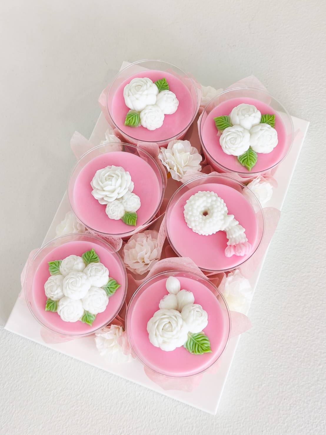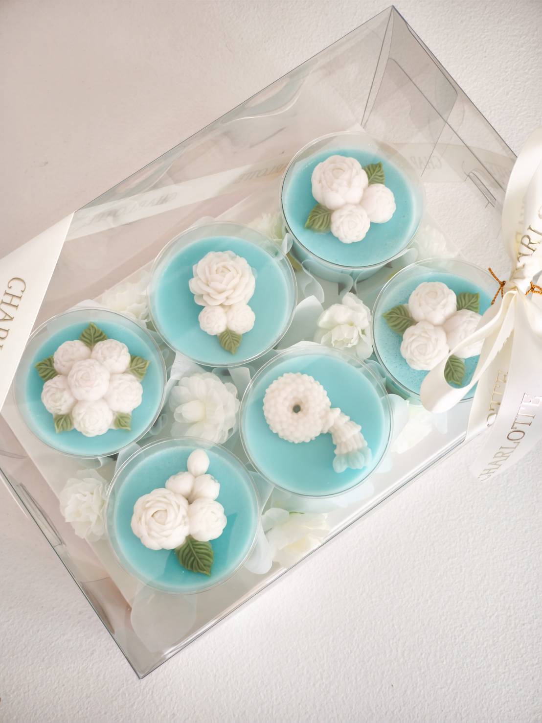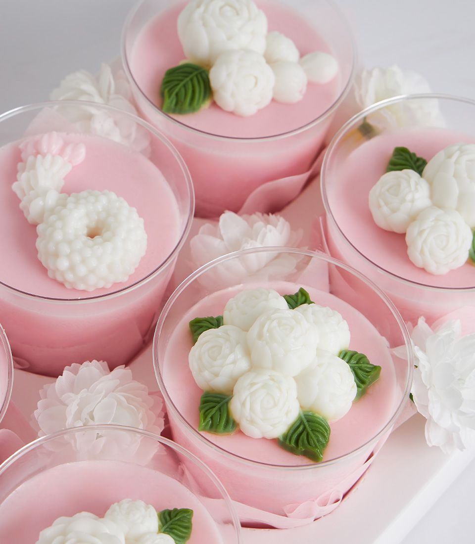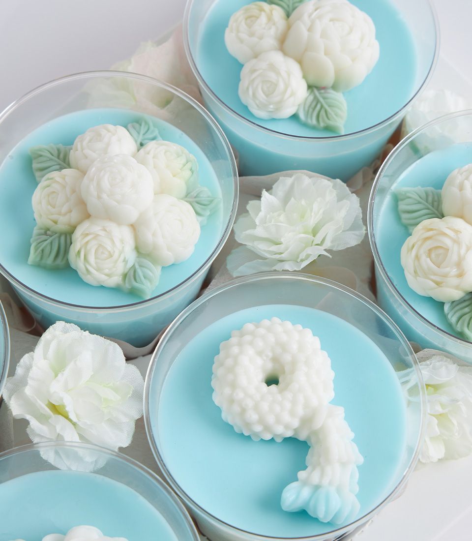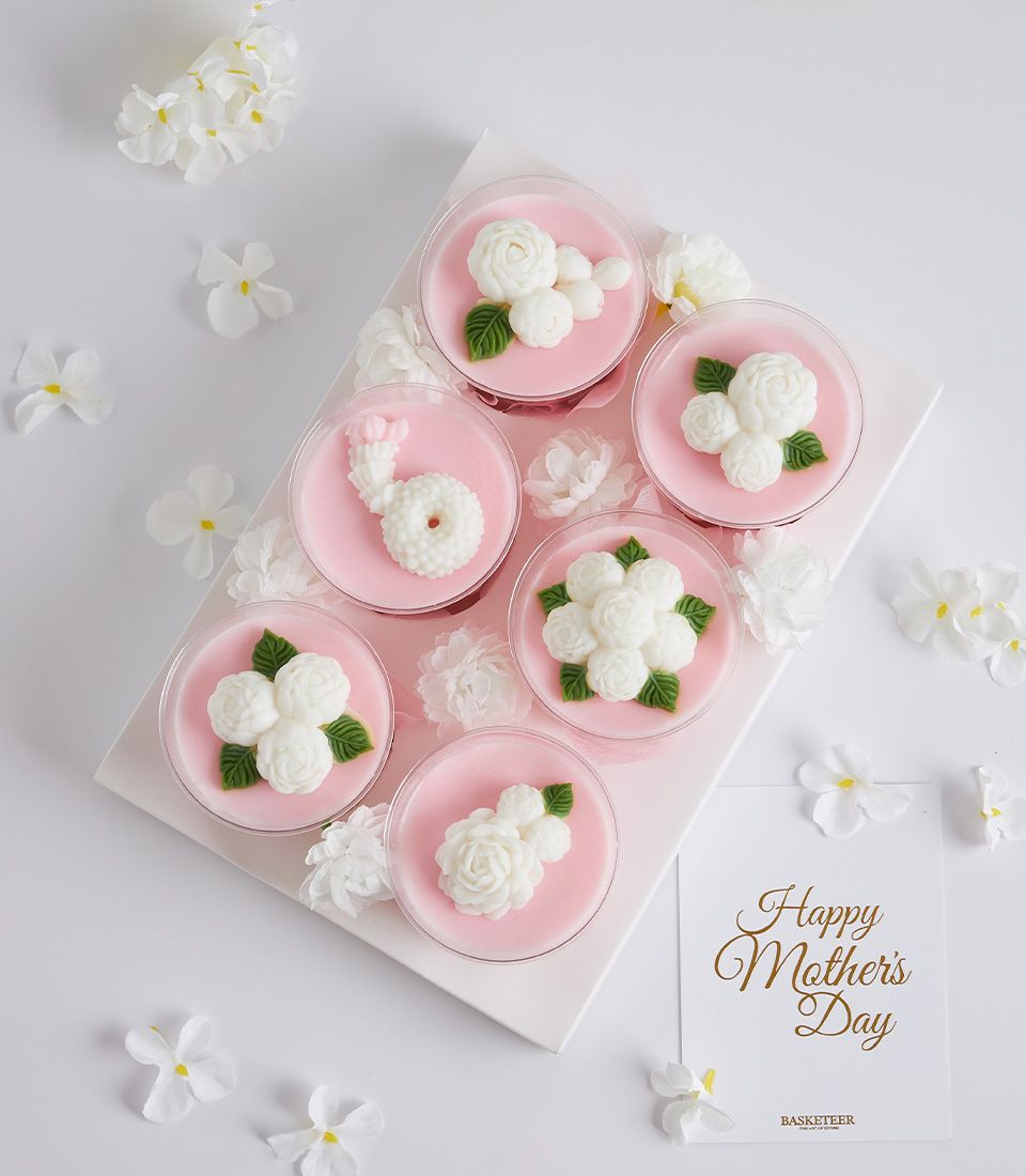 Mini Coconut Jelly Dessert Set for Mum’s Special Day Surprise Mum this Mother’s Day with a blue and pink coconut jelly gift set, beautifully adorned with jasmine flowers. Made from premium Thai coconut milk, it’s a heartfelt gift that celebrates Thai tradition with a delicate, elegant touch — perfect for honouring your beloved mother.