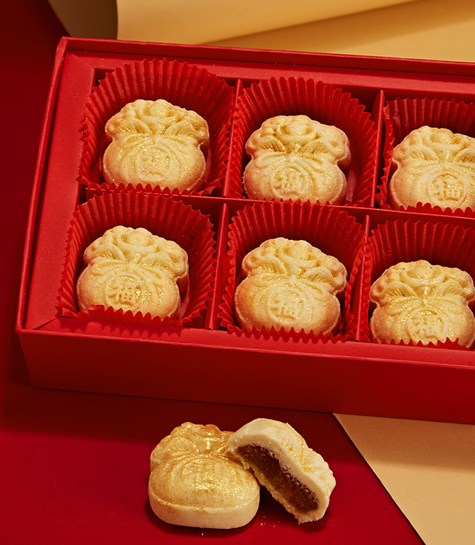 Celebrate Chinese New Year with golden money bag-shaped pineapple tarts. A festive and flavorful gift in a vibrant red box.