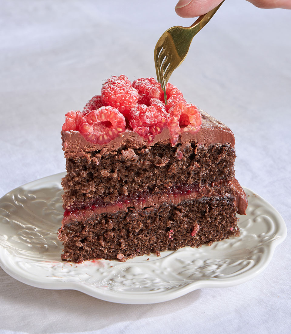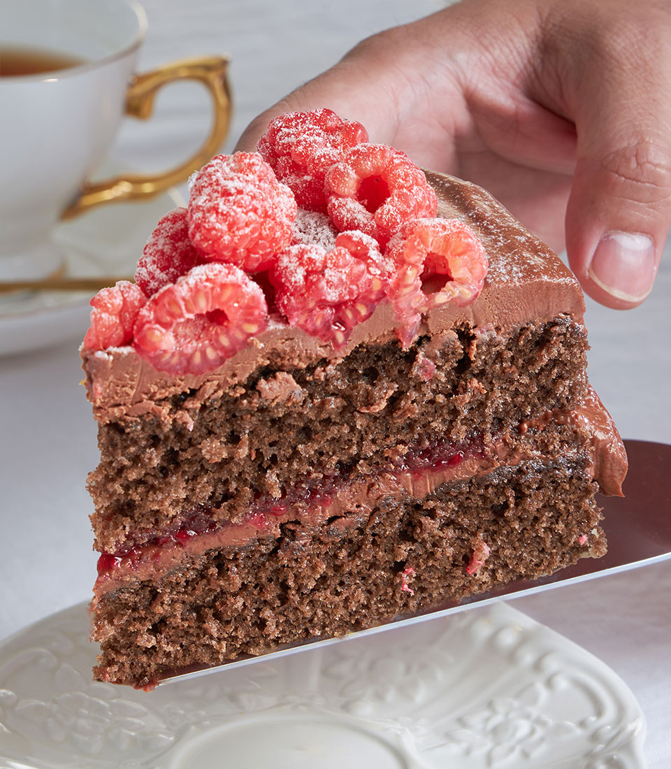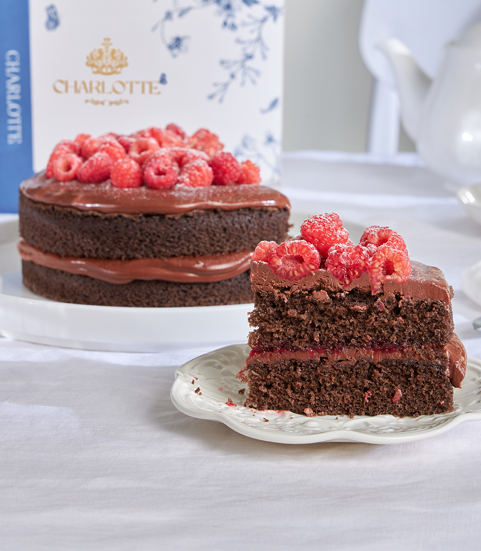 Grandma’s award-winning sponge meets rich chocolate ganache, tart raspberries, and a hint of jam — a timeless classic with a decadent twist.