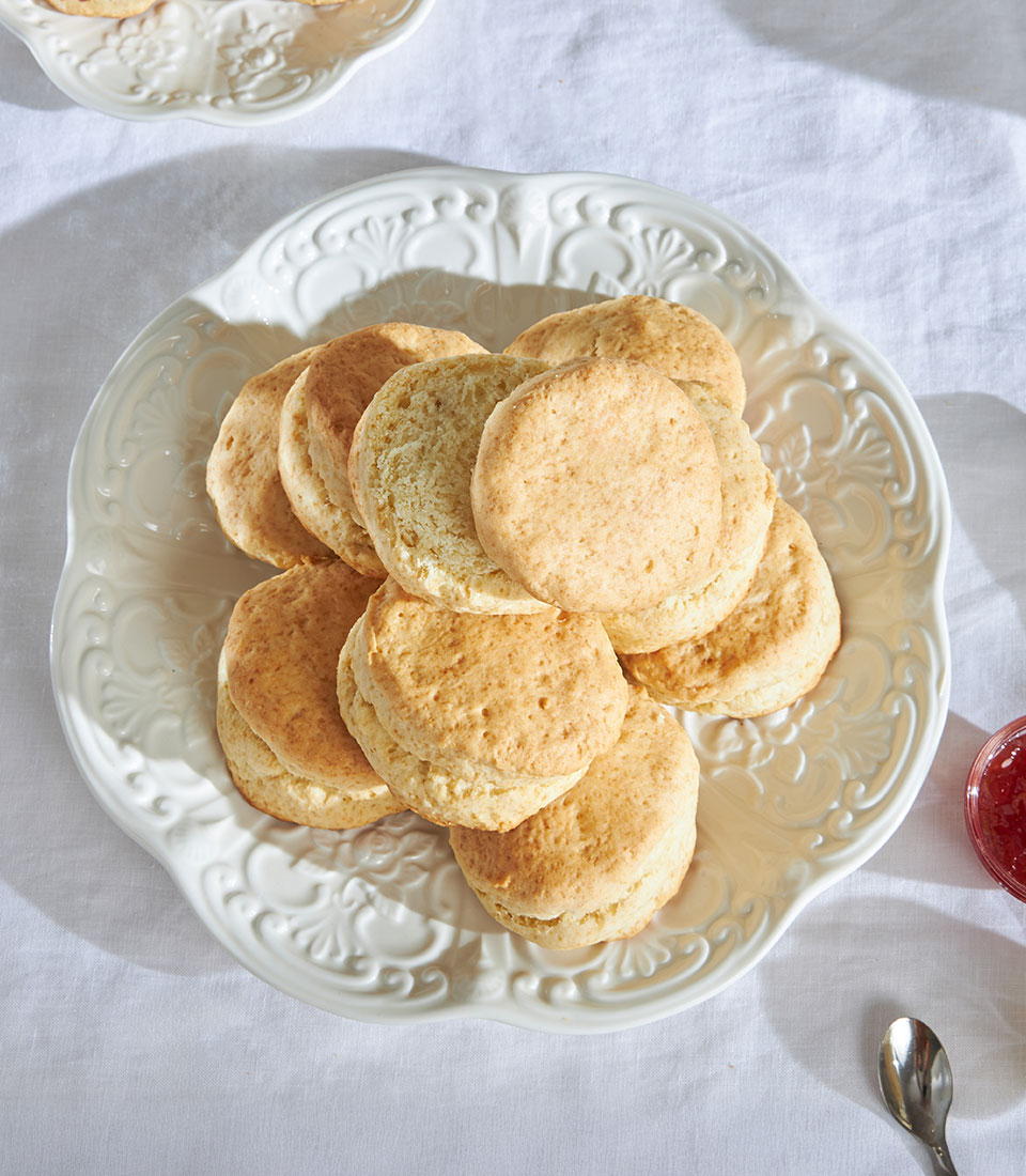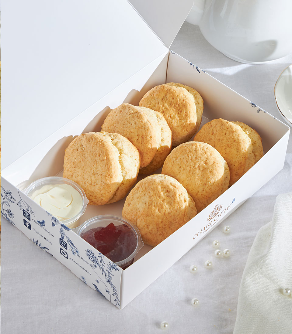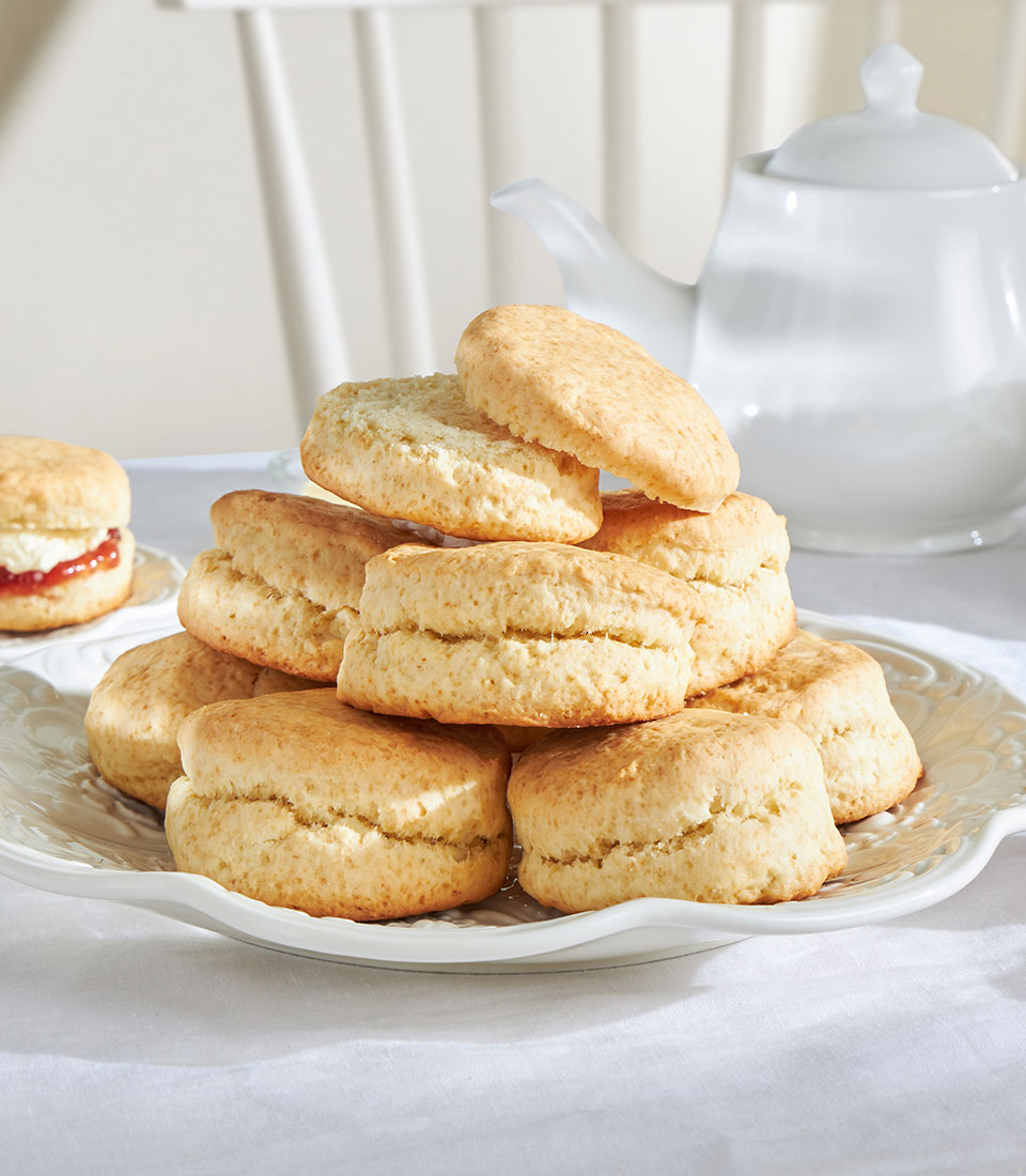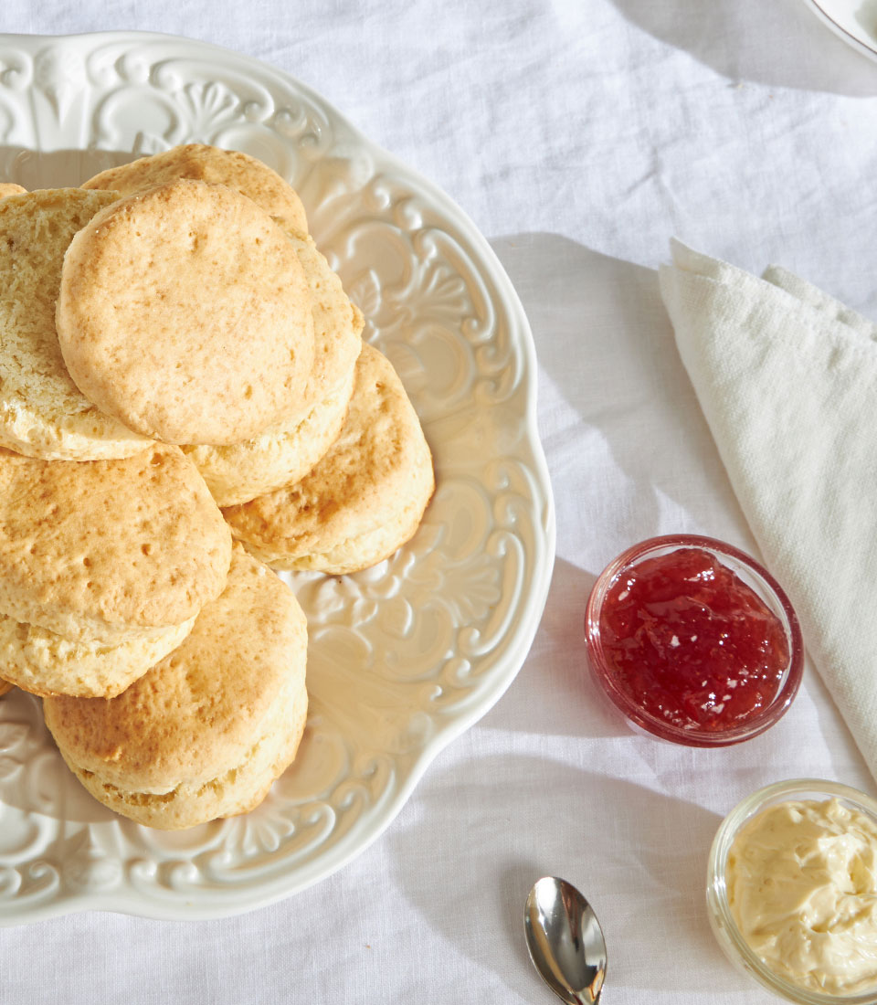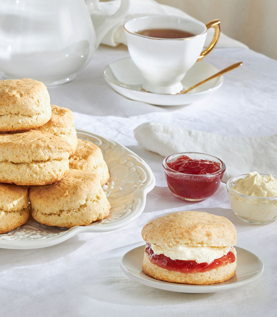 Traditional British scones served with strawberry jam and buttercream. Light, buttery, and perfect for afternoon tea.