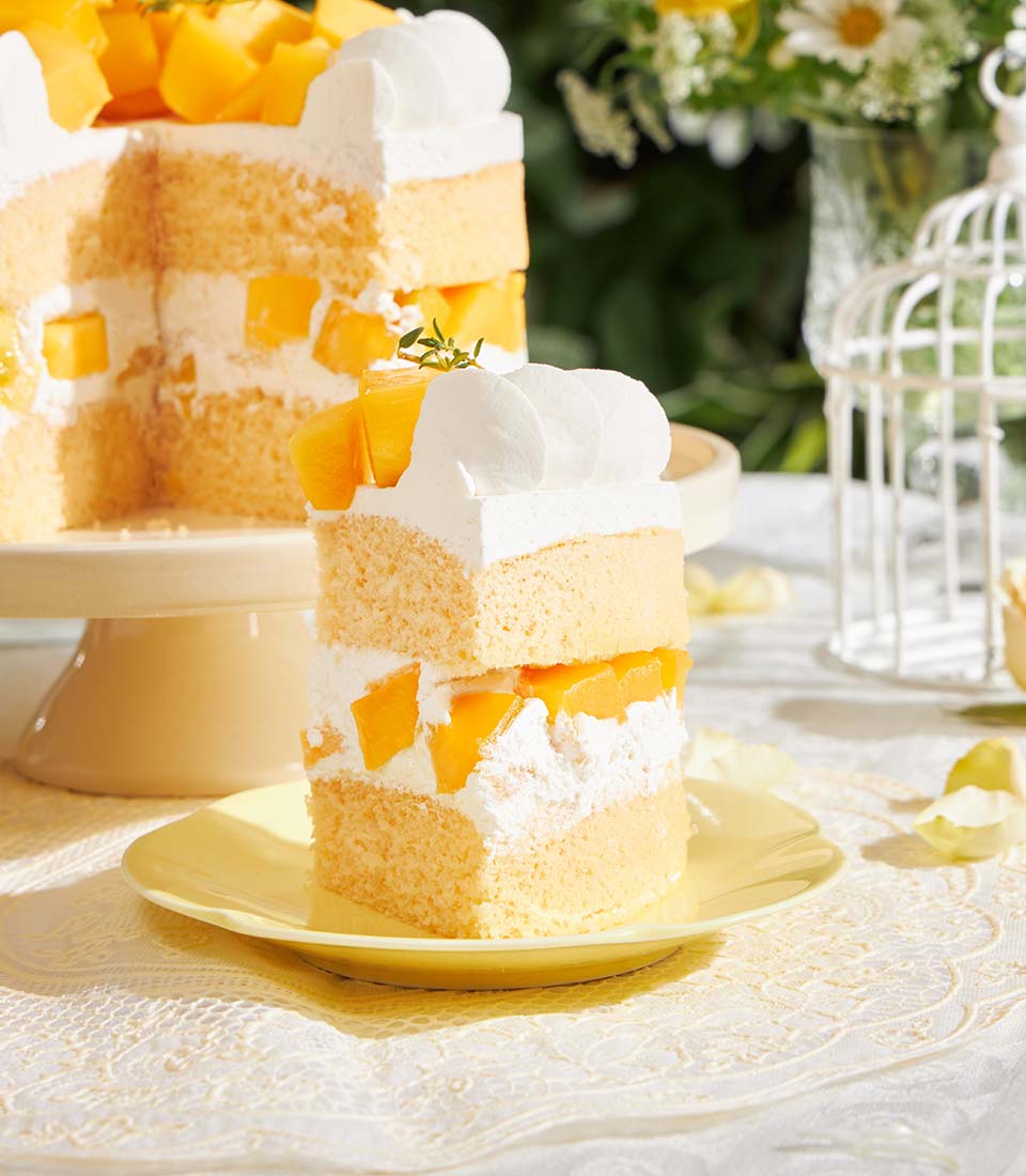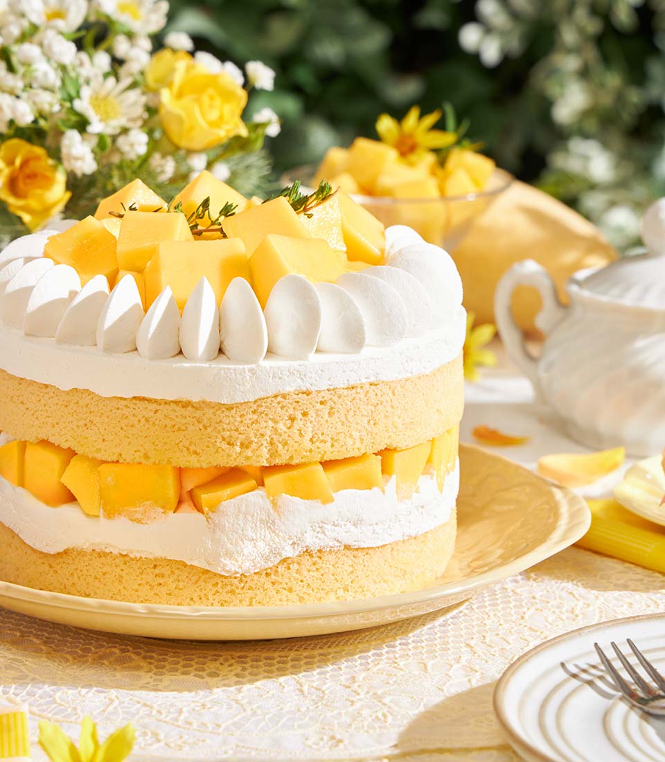A light and airy chiffon sponge layered with fresh golden mango and smooth soft cream - delicately sweet, refreshing, and beautifully balanced. Crafted with premium seasonal mangoes, this elegant cake captures the essence of summer in a refined and joyful presentation, perfect for celebrations and thoughtful gifting.