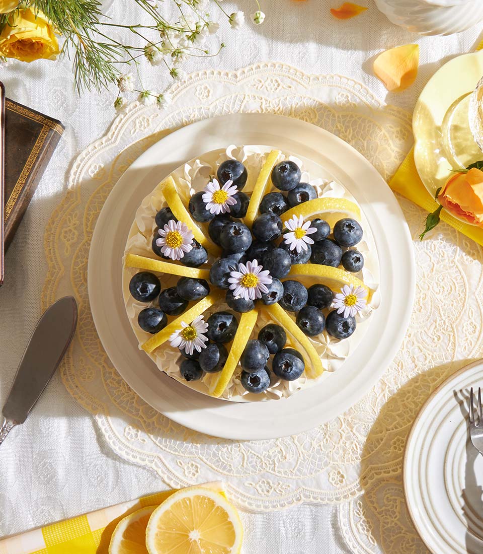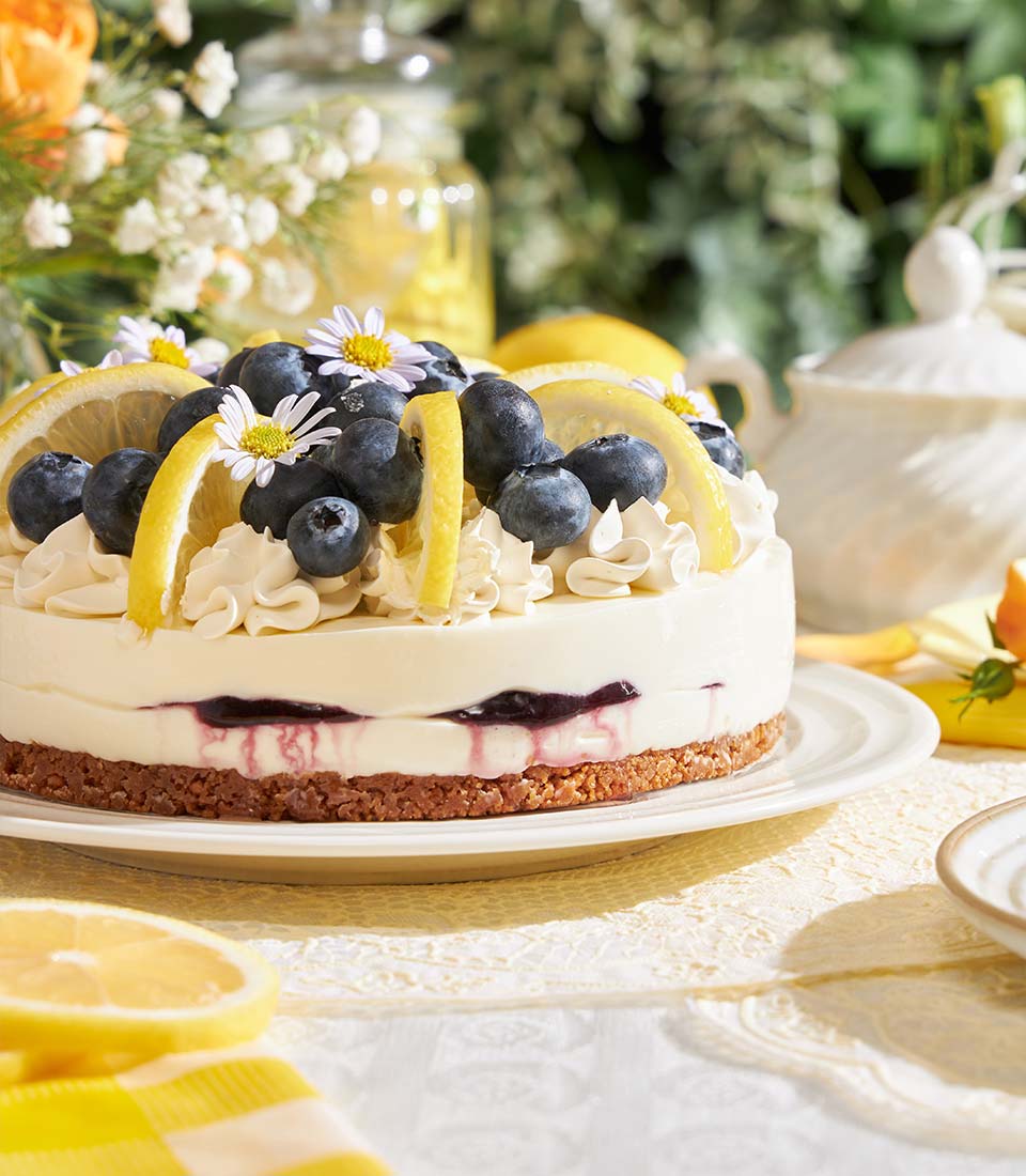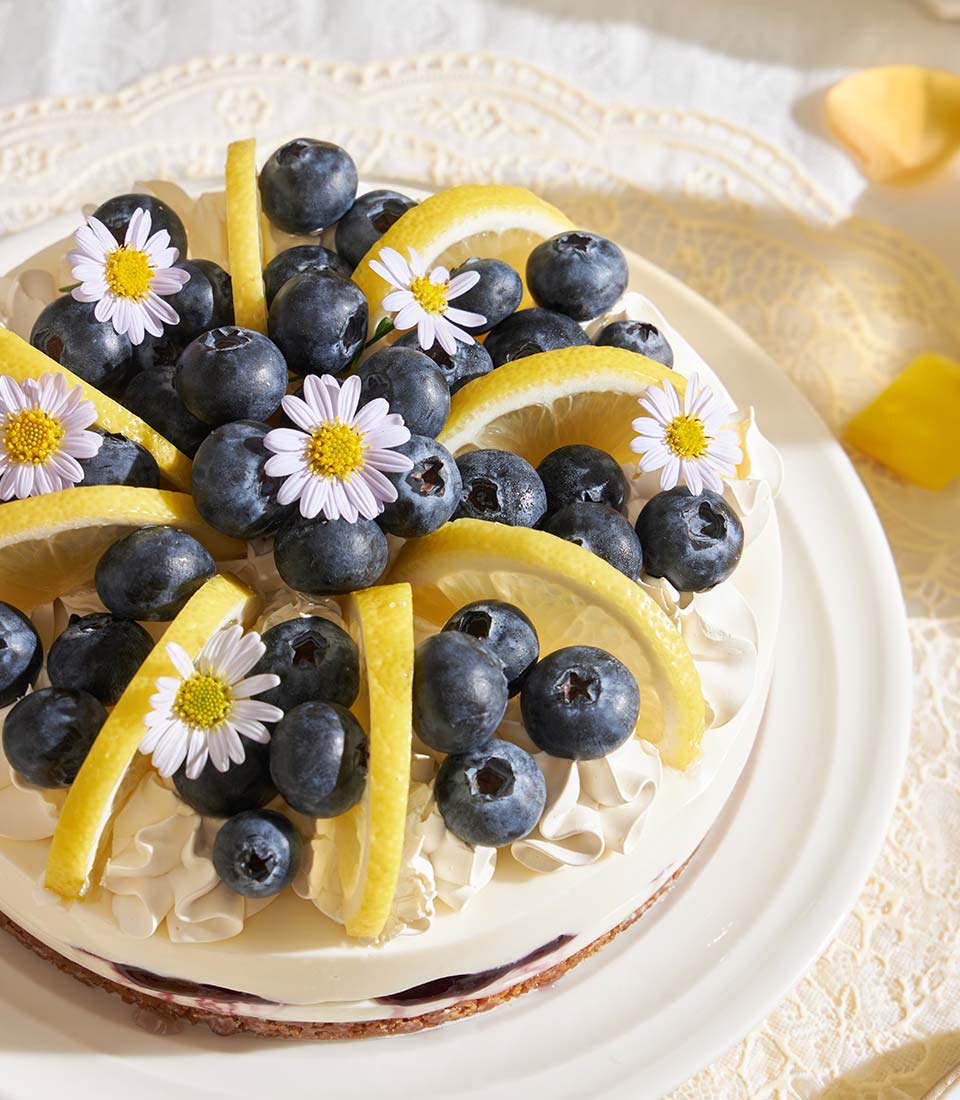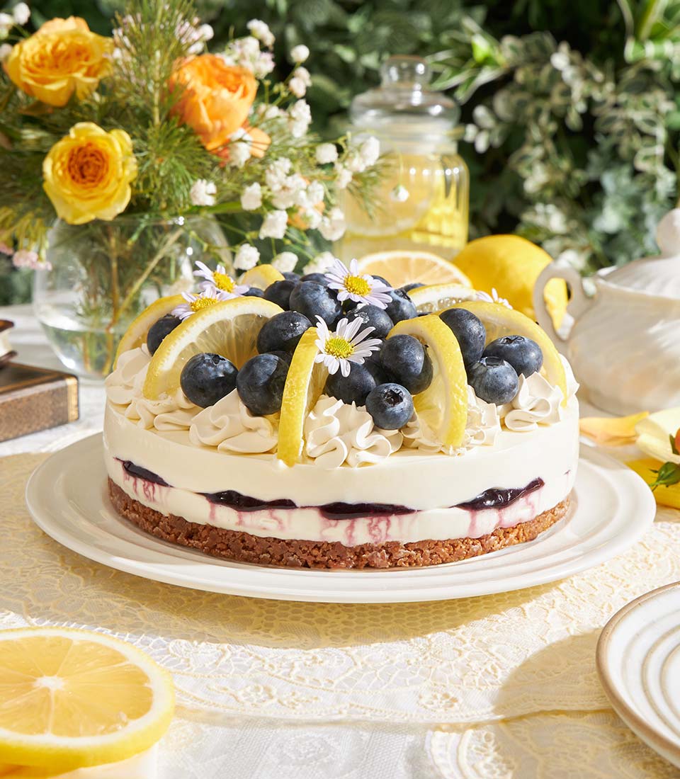A refined baked cheesecake layered with smooth cream cheese and a buttery Biscoff base, balanced with fresh blueberries and zesty lemon - rich yet refreshing with a delicate citrus finish. Elegantly crafted for those who appreciate a modern twist on a classic dessert, perfect for gifting or a sophisticated celebration.