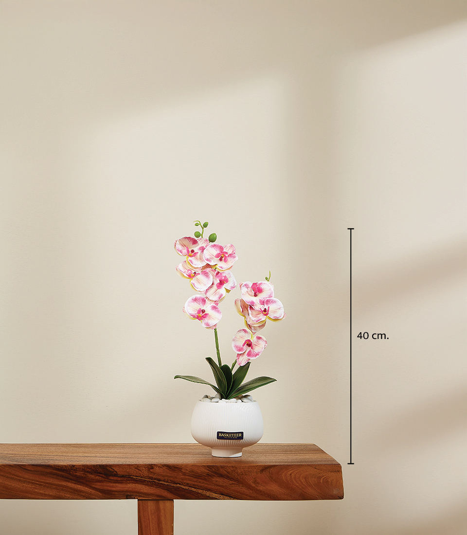 Chic pink-white orchid in a ceramic vase—perfect as a gift or elegant home décor to add charm and brighten any space beautifully.