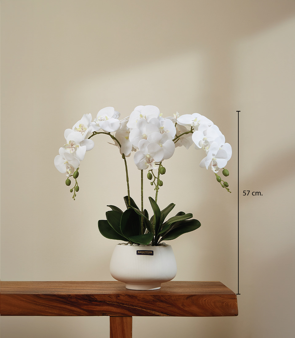 Celebrate a new home with our Graceful White Phalaenopsis Potted Orchids. These elegant artificial orchids add a touch of beauty to any space.