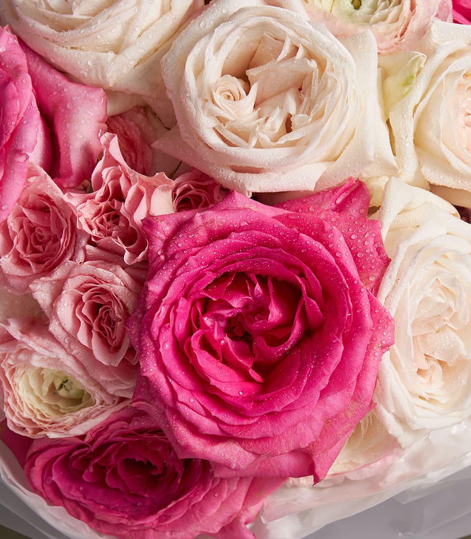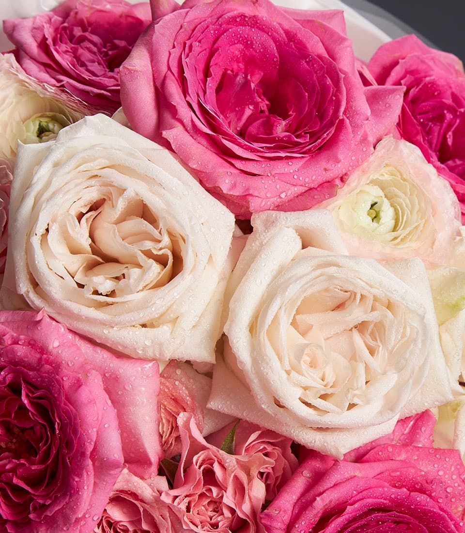Elegant bouquet of pink and white roses, beautifully arranged for romantic occasions, anniversaries, and heartfelt celebrations.