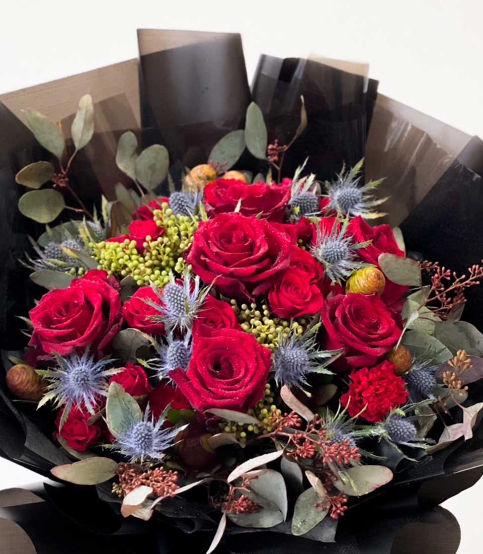 Love's Euphoria Blooms Bouquet Celebrate passion and elegance with our Love's Euphoria Blooms Bouquet. Featuring stunning red flowers, this bouquet exudes beauty and romance, making it the perfect choice for expressing heartfelt emotions or adding a touch of luxury to any occasion. Brighten someone's day with this vibrant and captivating floral arrangement.
