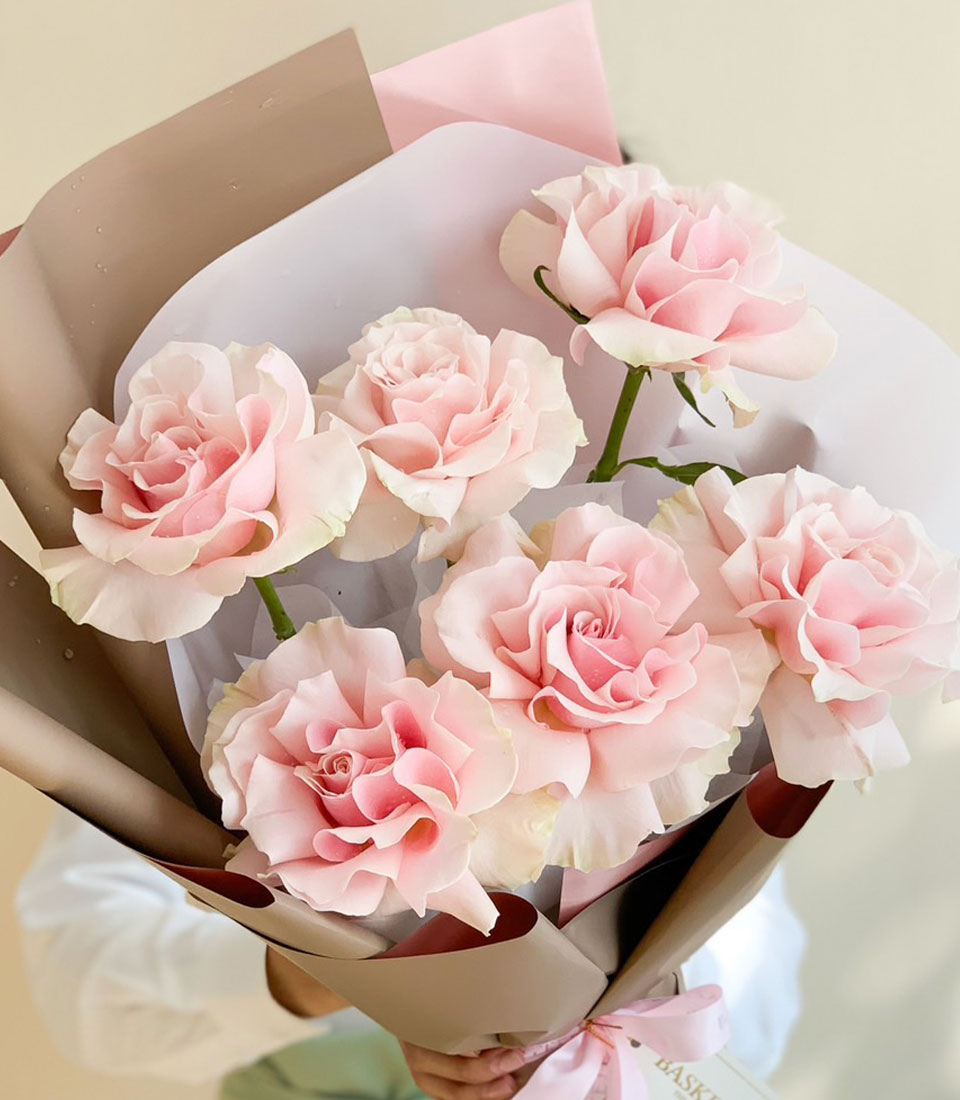 Soft Pink Rose Bouquet Delicately wrapped in neutral paper and tied with a pink ribbon, this soft pink rose bouquet is perfect for weddings, anniversaries, or romantic gestures. Its gentle tones bring classic beauty and sophistication to any occasion.