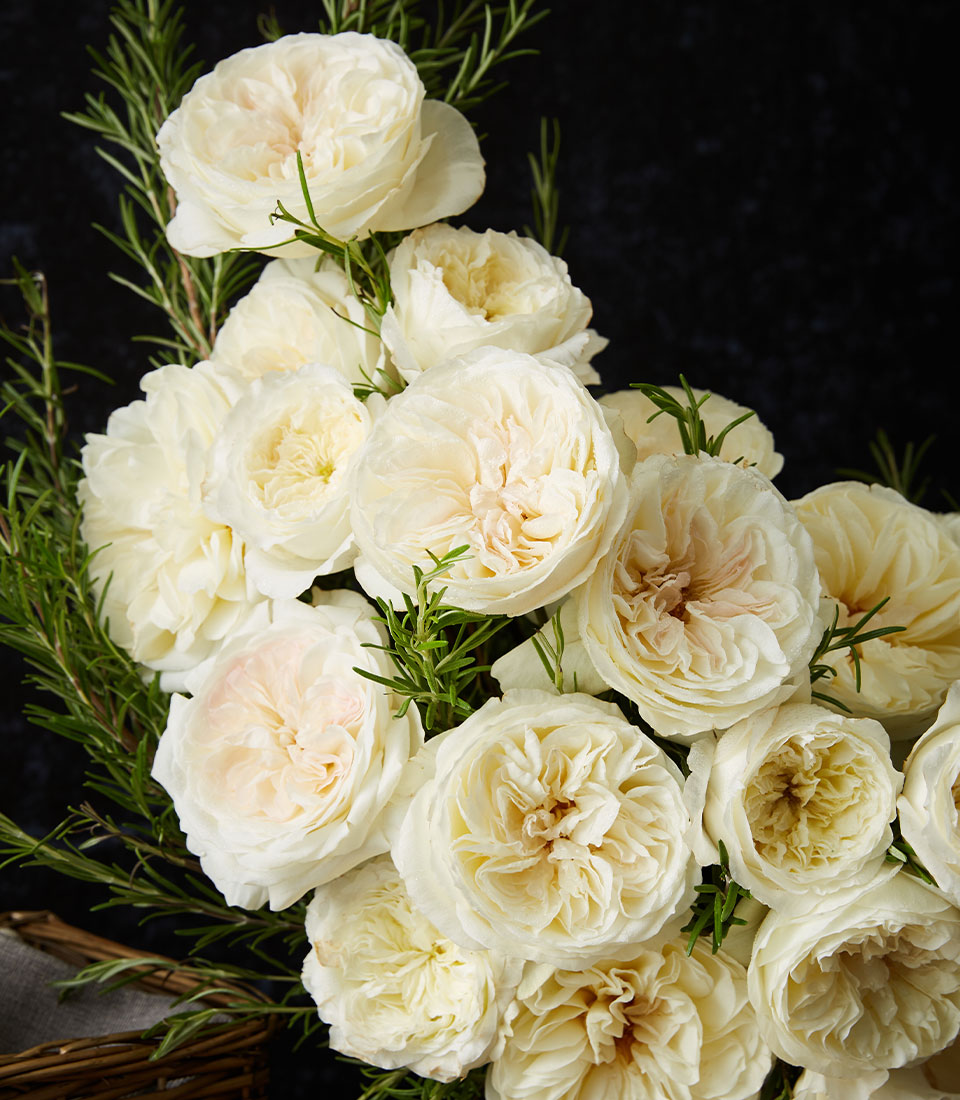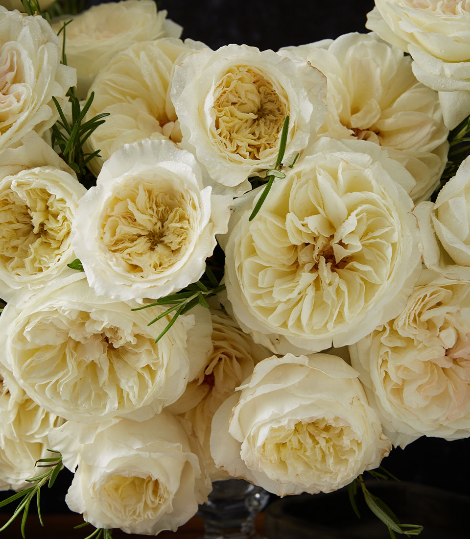 English Serenity White Floral Vase This elegant arrangement showcases full-bloom ivory roses in a graceful cascading design, adding a touch of timeless beauty to any space. Ideal for sophisticated home décor or luxurious gifting, it brings softness and charm to every setting. Handcrafted for those who appreciate classic floral elegance.
