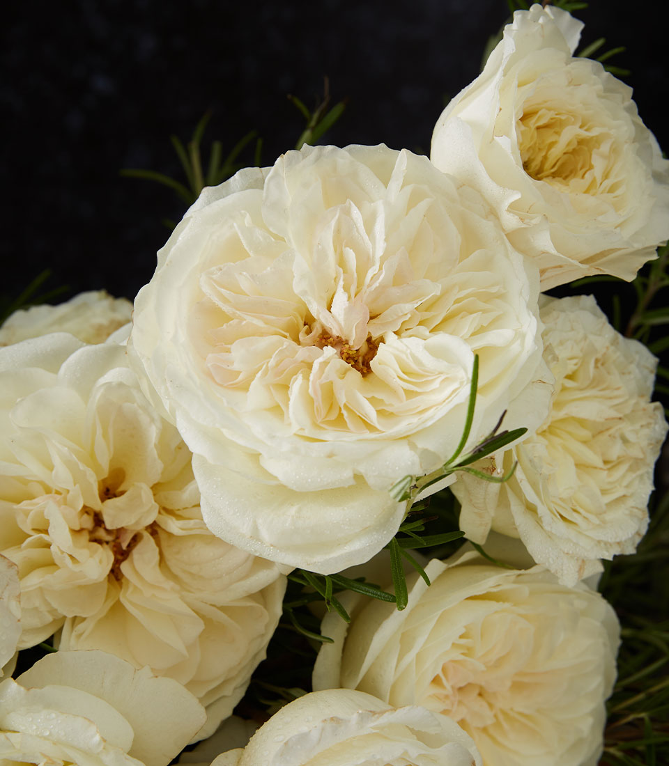 Ivory roses in cascading style, exquisitely arranged to reflect luxury and elegance. A refined floral centrepiece for classic spaces.