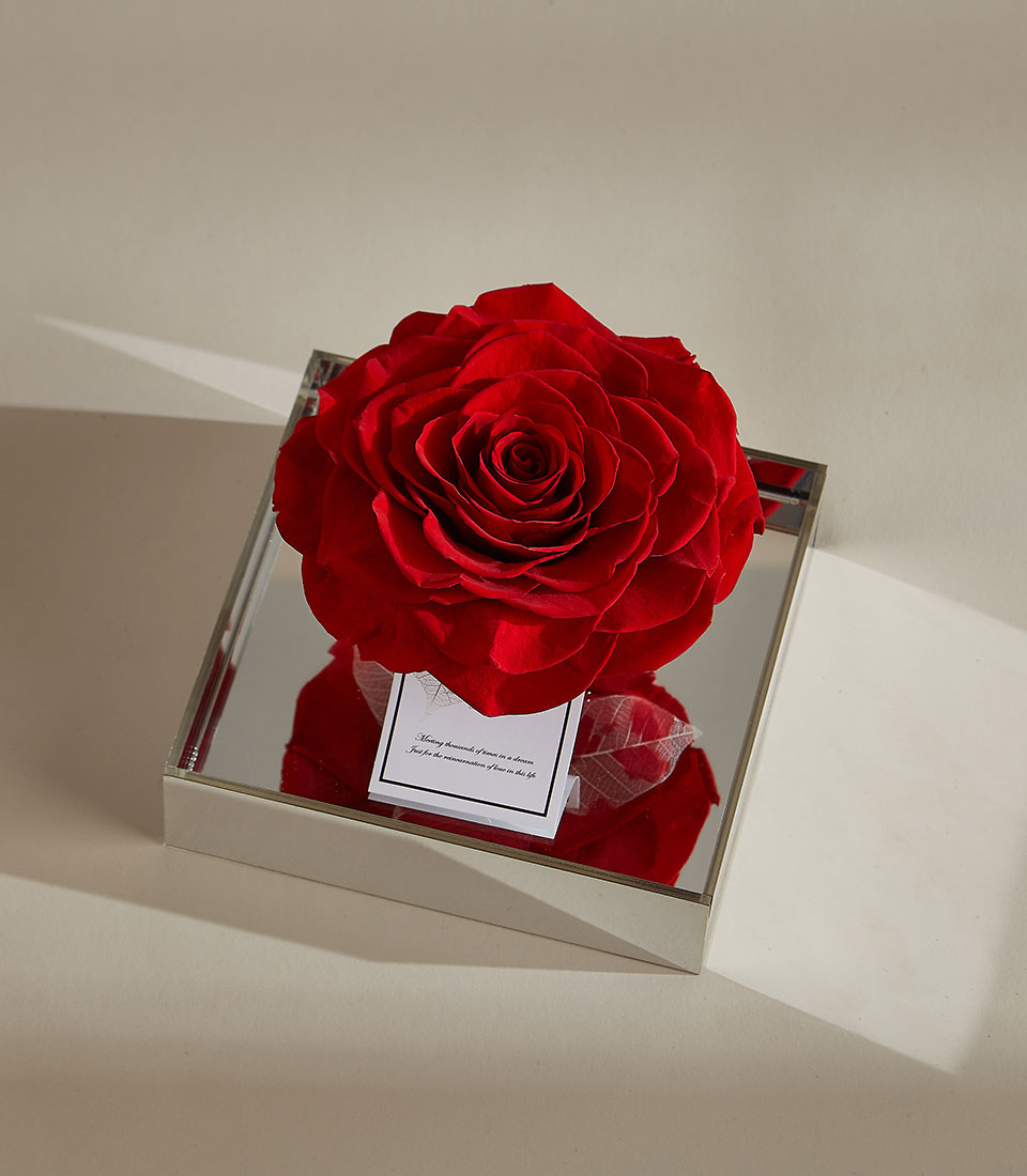 Eternal Preserved Rose in Luxury Acrylic Box Celebrate everlasting love with our Eternal Preserved Rose in Luxury Acrylic Box, a stunning floral keepsake designed to last for years. Elegantly encased in a clear acrylic display with a mirrored base, this real preserved rose is available in classic red or soft pink, tied with a delicate satin ribbon for an added touch of luxury. A perfect gift for Valentine’s Day, anniversaries, proposals, or elegant