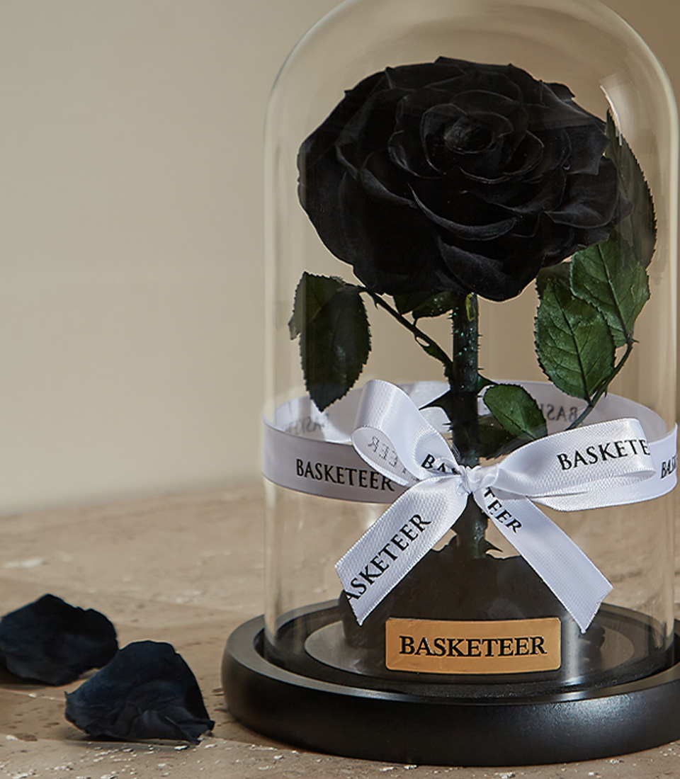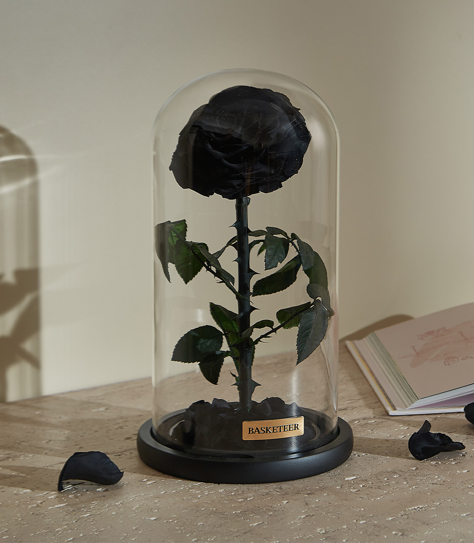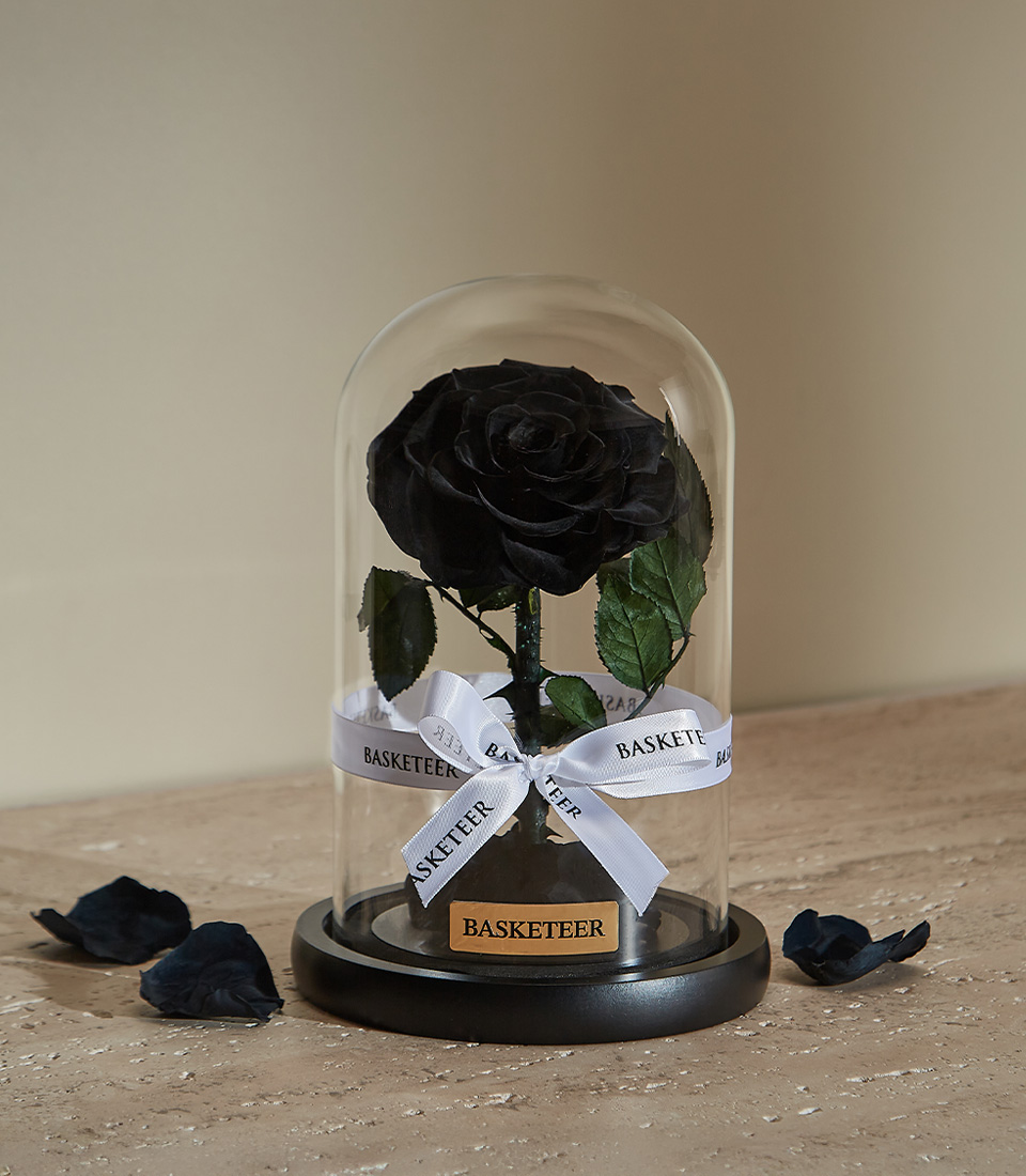 Valentine’s Eternal Black Rose Dome Make a statement with the Midnight Black Enchanted Rose a symbol of love mystery and strength This preserved rose in a sleek glass dome requires no maintenance perfect for romantic gifts gothic decor or adding timeless elegance to any space.
