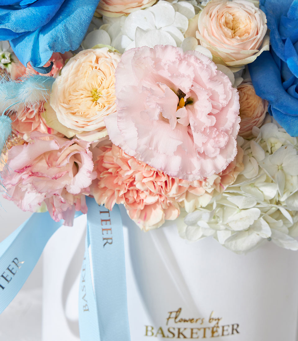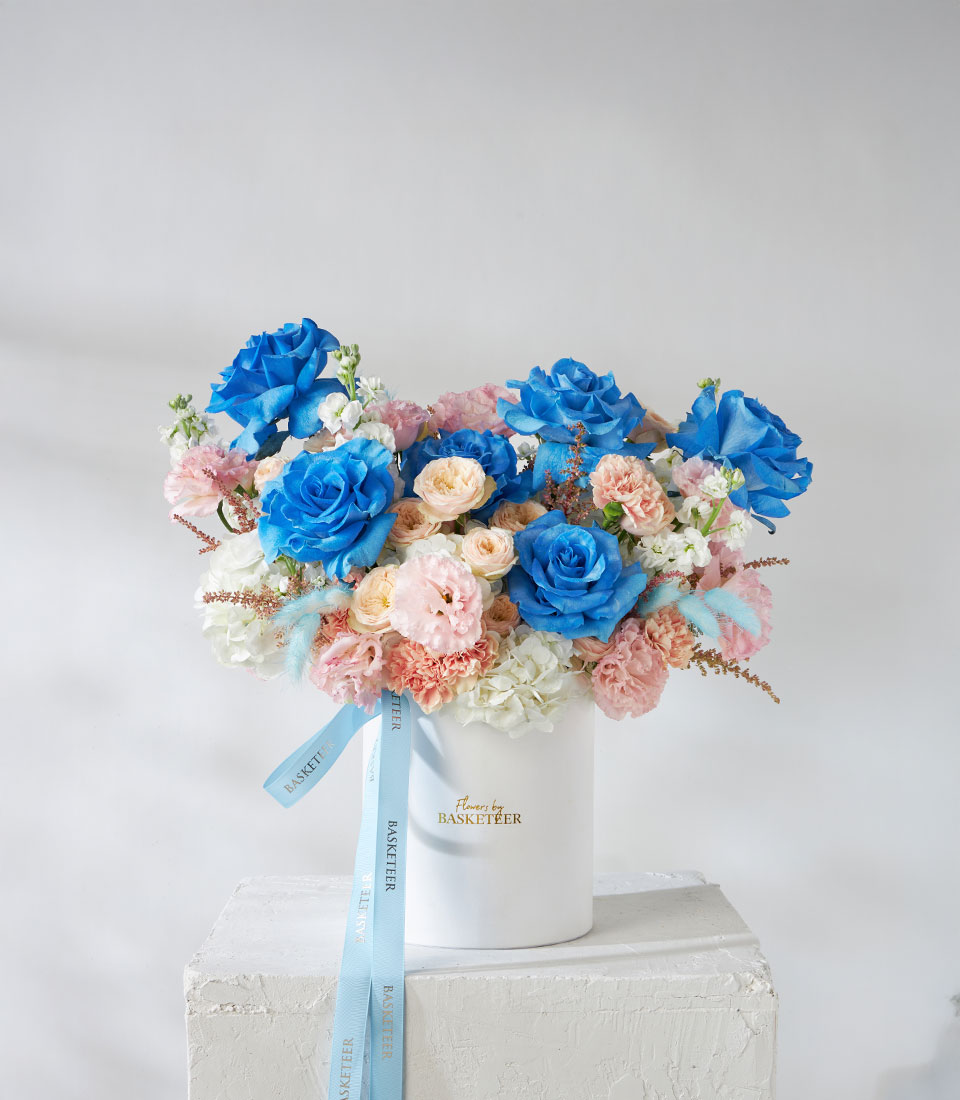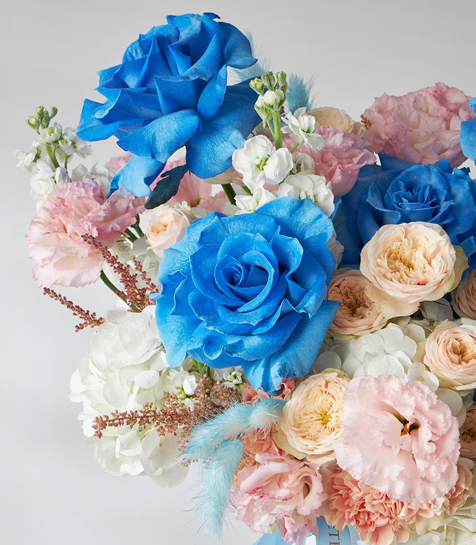 A unique flower box featuring Whisper Blue roses imported from Ecuador, complemented by pastel blooms for a modern yet romantic look. Ideal for birthdays, congratulations, or new beginnings. Same-day flower delivery in Bangkok.