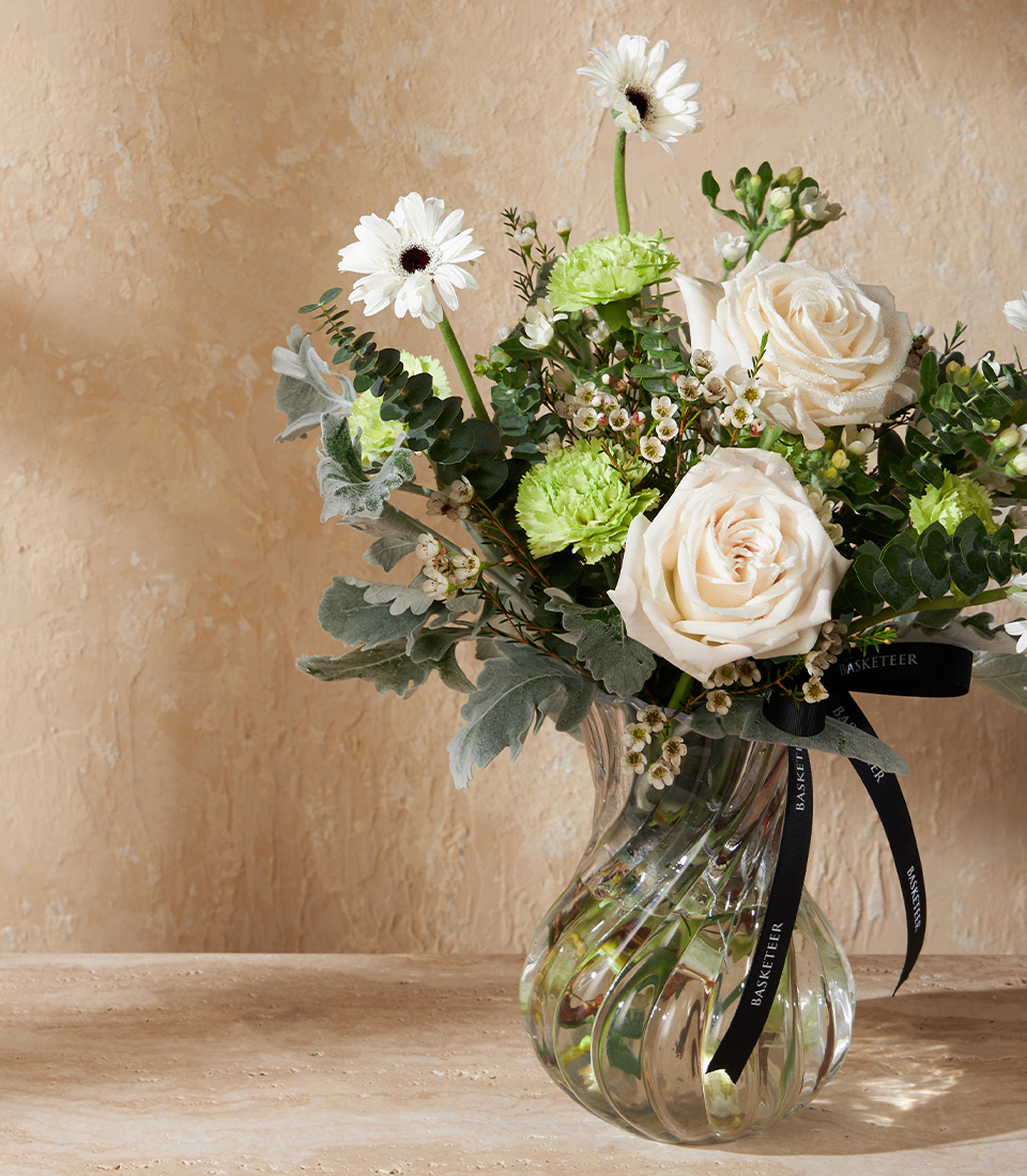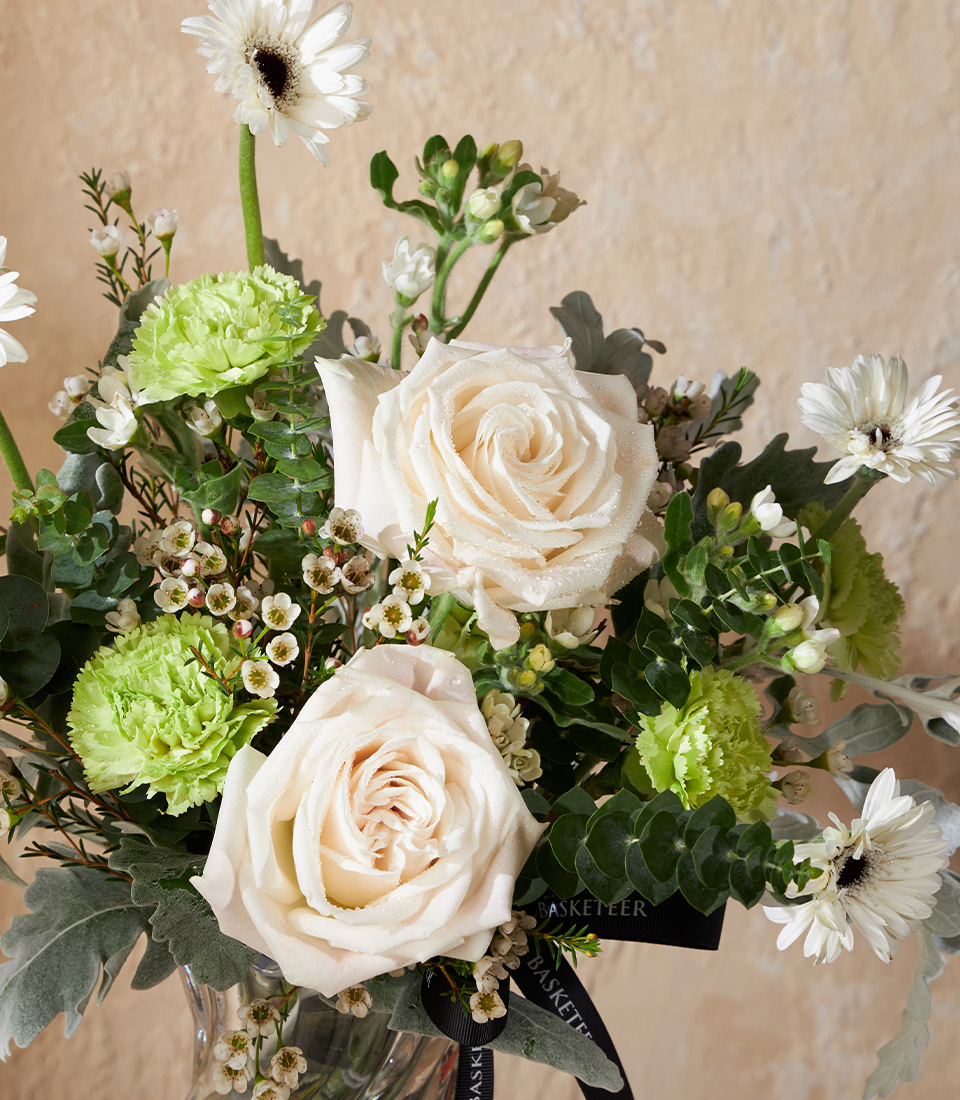 Elegant vase with white roses green carnations and gerberas Perfect for birthdays anniversaries and same day flower delivery in Bangkok