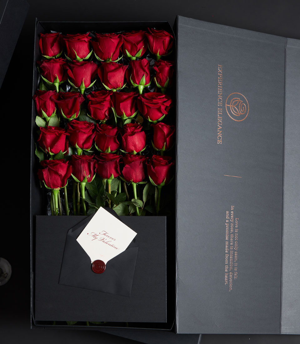An unforgettable statement of love, this luxury red rose bouquet features premium Explorer roses imported from Ecuador, elegantly presented in a signature VIP rose box. Rich crimson blooms symbolise passion and devotion, making this the ultimate Valentine gift for a truly romantic and sophisticated celebration.