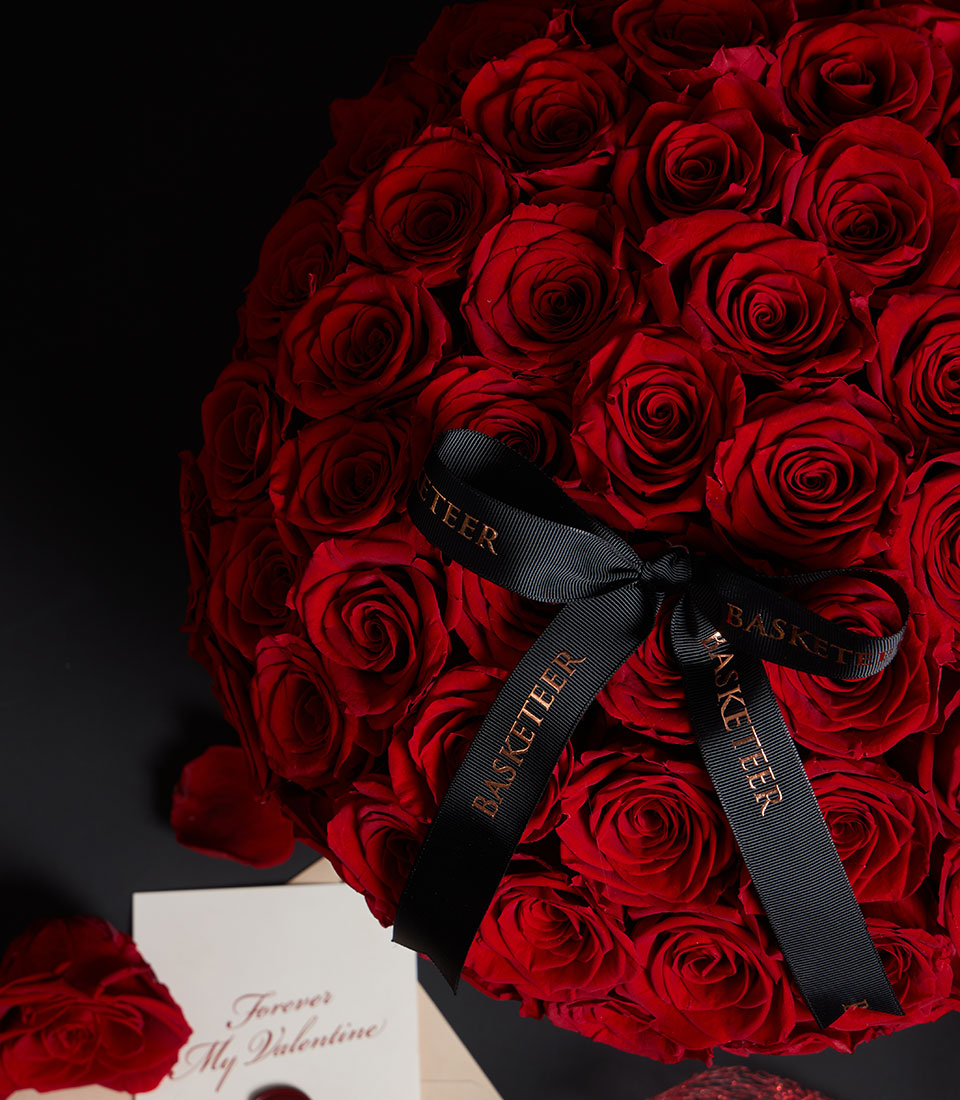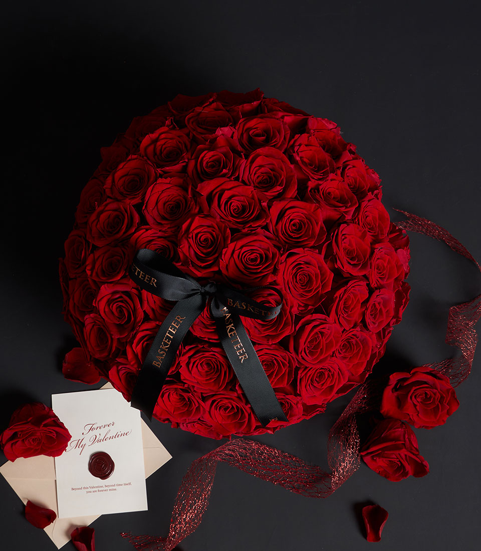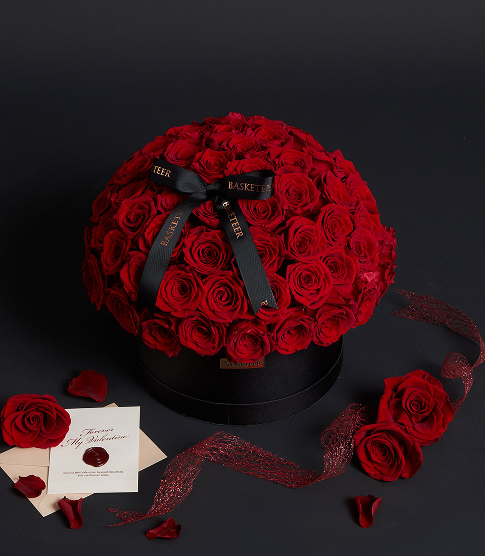 A timeless expression of love. Premium red preserved roses arranged in a luxury hat box. An elegant Valentine gift designed to last beautifully for years.
