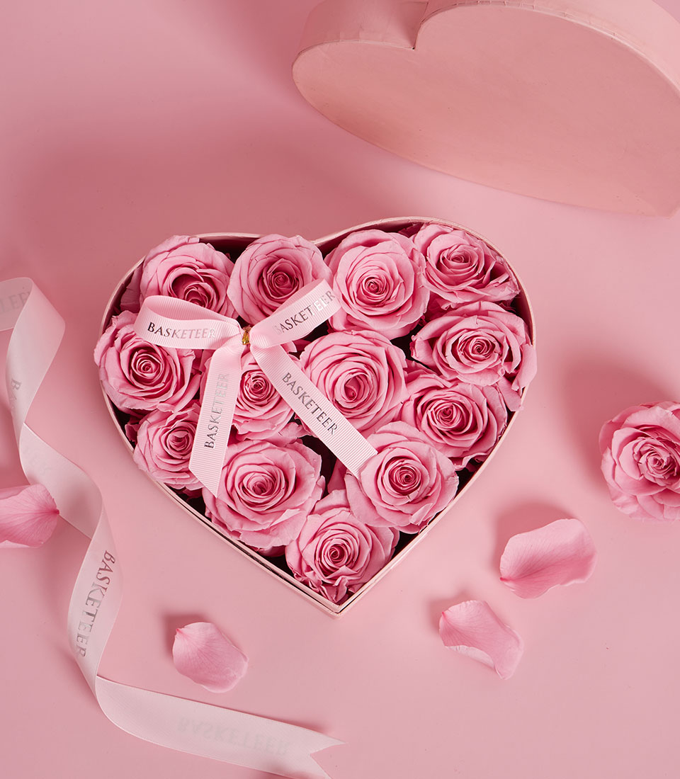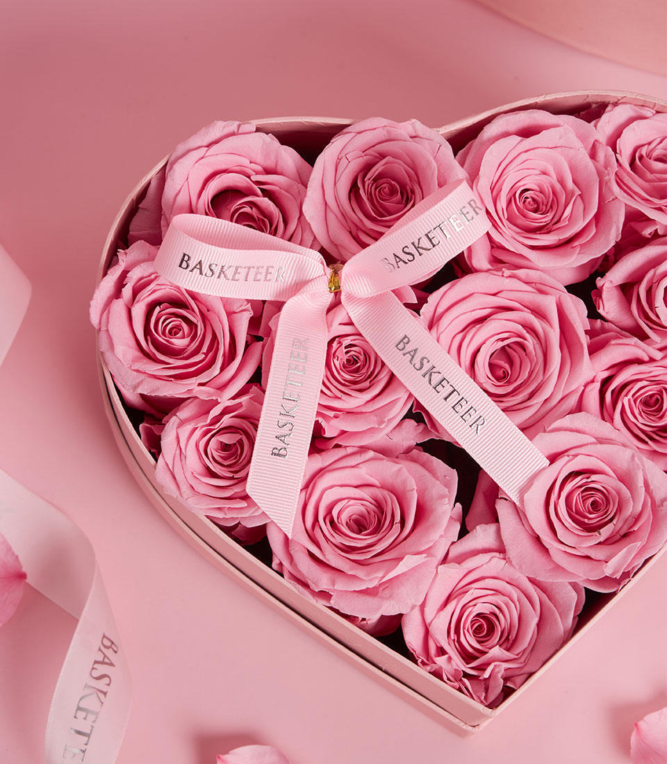 Celebrate deep affection with our BX-107-S heart-shaped gift box, overflowing with premium preserved pink roses. Hand-curated by Flowers by Basketeer, these "eternal" blooms maintain their natural beauty and soft texture for years. Encased in a luxury pink paper VIP box, this arrangement is a romantic masterpiece designed to express everlasting love and elegance for Valentine’s 2026.