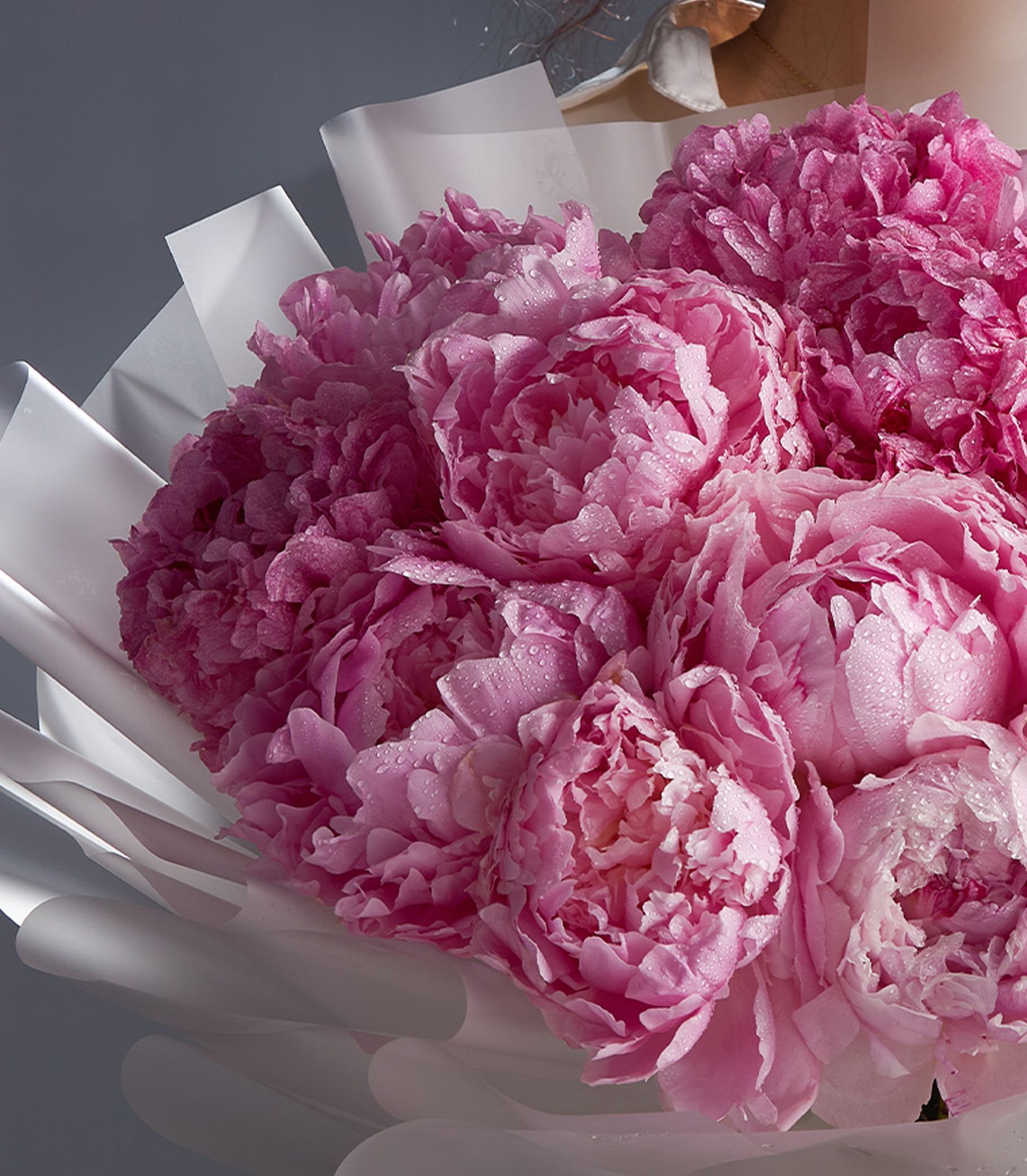 Stunning bouquet of pink peonies from the Netherlands, symbolising romance and elegance for life’s most beautiful moments.