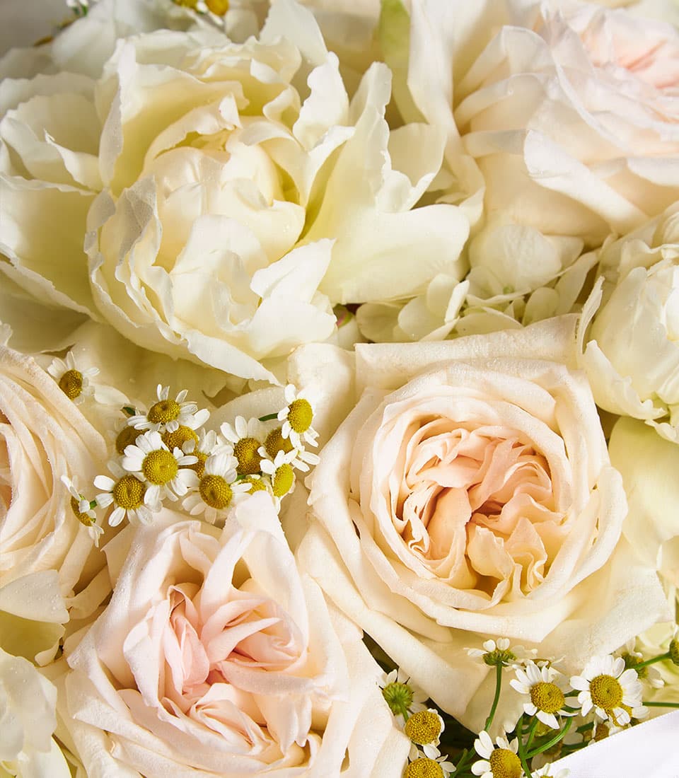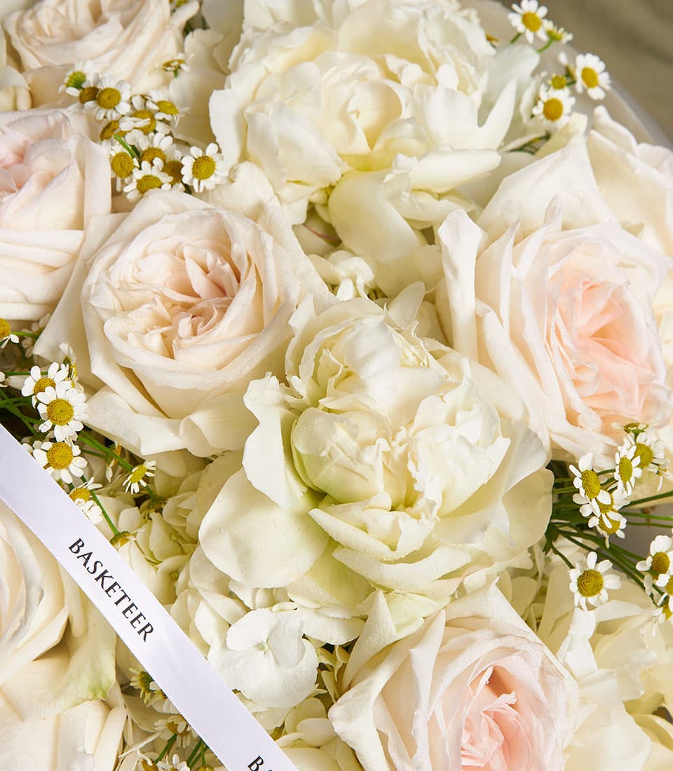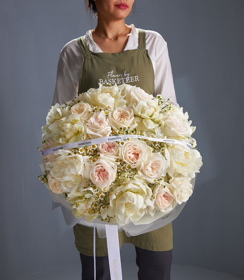 Luxurious white and blush bouquet with roses and peonies a premium floral gift symbolizing elegance grace and timeless love