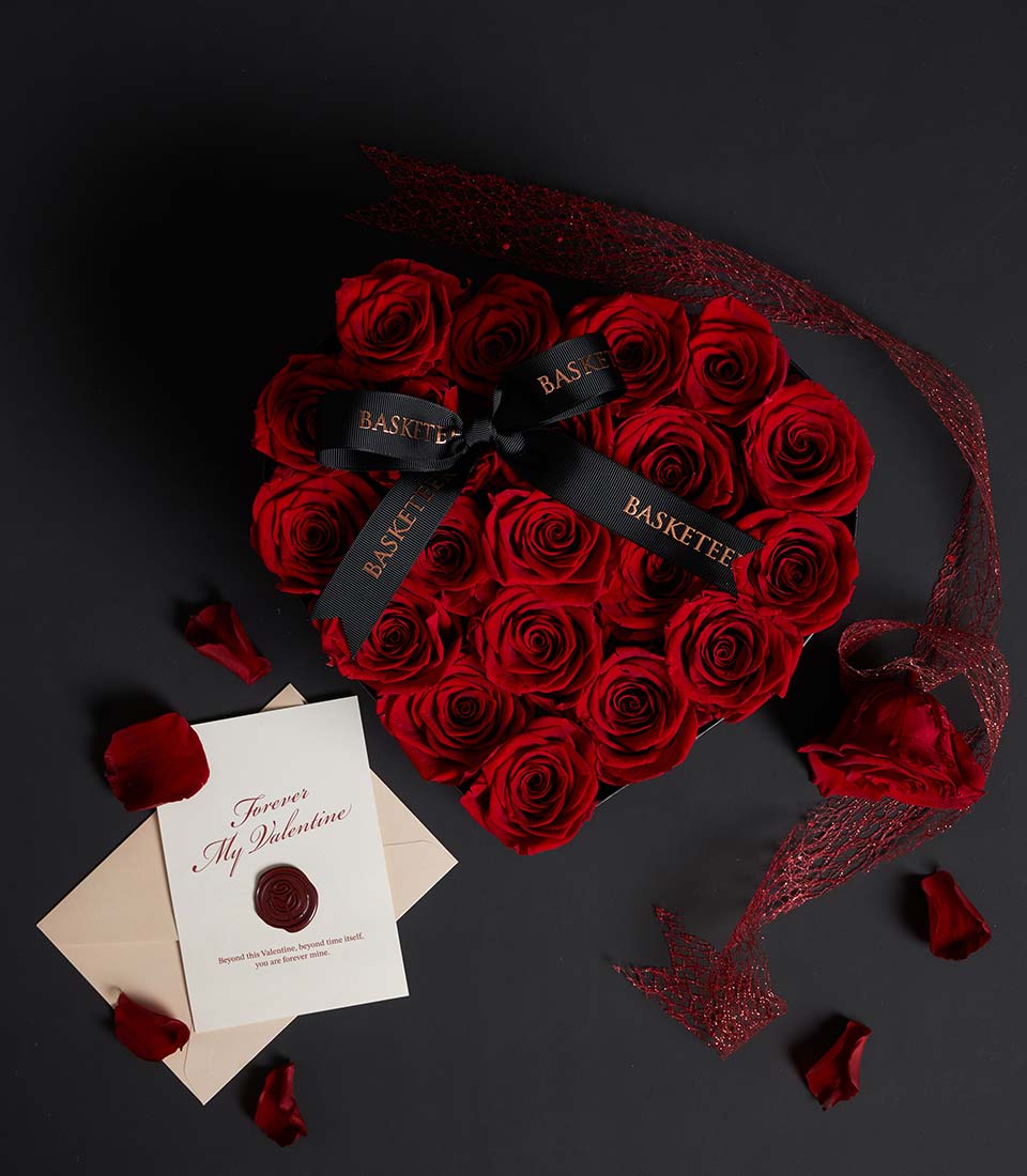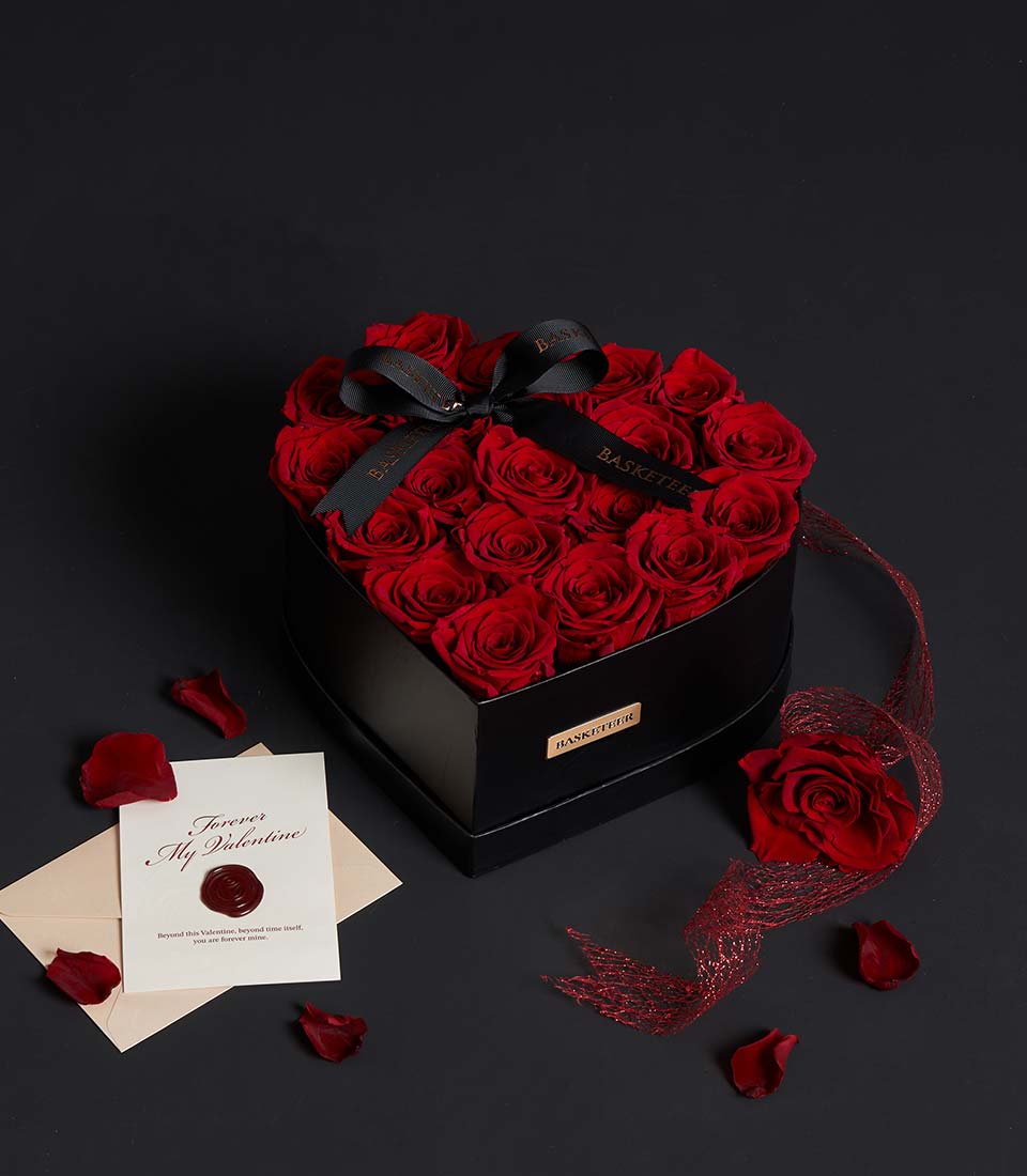 A romantic Valentine gift featuring luxurious red preserved roses arranged in an elegant heart-shaped box. Designed to symbolize everlasting love, this timeless rose gift creates a meaningful and unforgettable Valentine surprise.