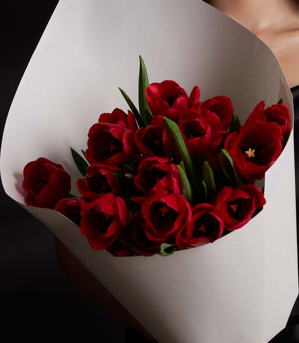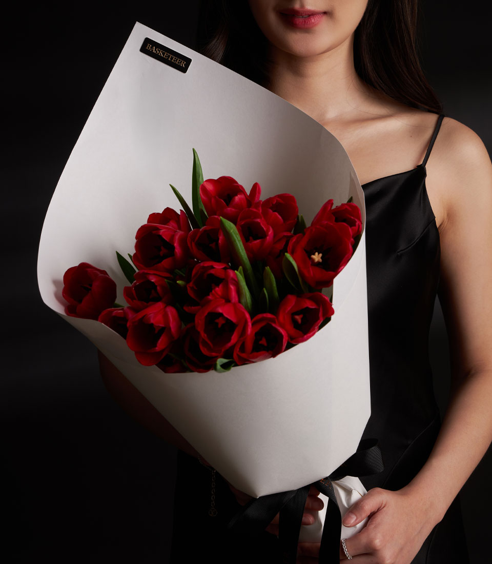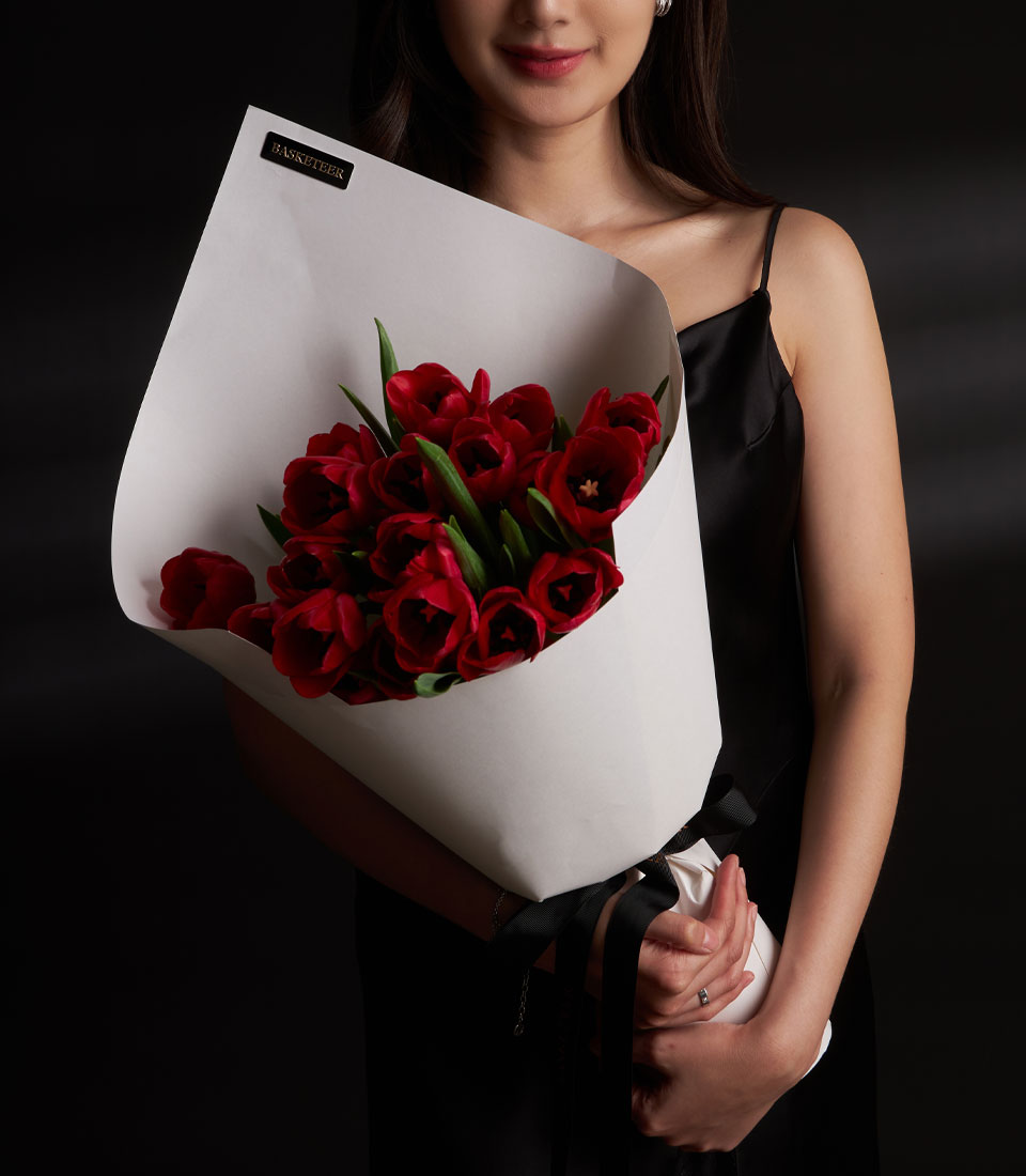 An elegant red Tulips bouquet designed to capture the essence of true love. Handcrafted with premium and refined wrapping, this romantic Valentine bouquet is a timeless gift to impress someone special and create unforgettable moments of love.