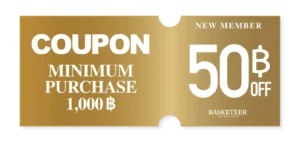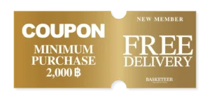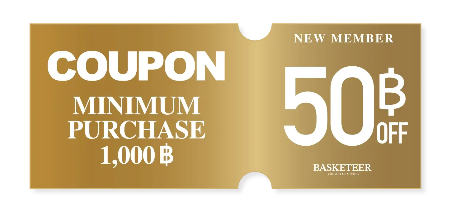 Exclusive Offers for New MembersJoin Basketeer today and enjoy instant savings with our welcome coupons, available based on your order value:🛍️ Get ฿50 Off with a minimum purchase of ฿1,000🎁 Get ฿100 Off with a minimum purchase of ฿2,000🚚 Free Delivery Coupon with a minimum purchase of ฿5,000Bangkok: Unlimited number of basketsOther provinces: Valid for delivery of 1 item onlySimply sign up as a new member and the eligible coupon will be automatically added to your account.📌 Terms & Conditions:Offers are valid for new members onlyCoupons will be issued based on the order value that meets the specified criteriaEach coupon is valid for one-time use per member accountCannot be combined with other promotions or discount codesBasketeer reserves the right to modify the terms and conditions without prior notice Discount code added via sales team. Click here to speak to our team now.