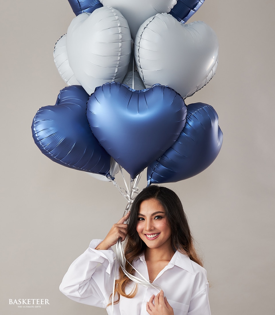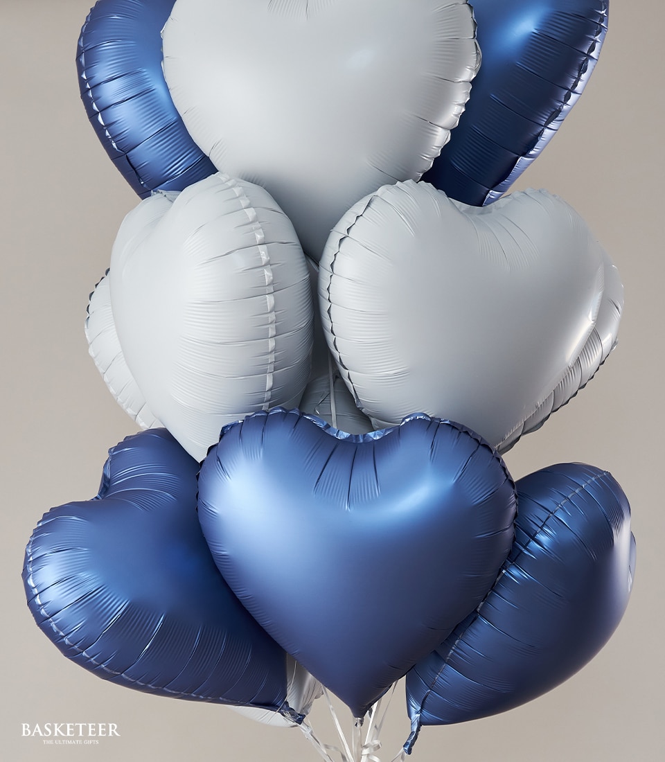Romantic Blue Heart Balloons Set Make a statement with this sophisticated heart balloon bouquet, featuring a cool-toned blend of deep midnight blue and shimmering silver balloons. Whether it’s a birthday, anniversary, or a romantic surprise, this elegant arrangement is sure to impress & delight.