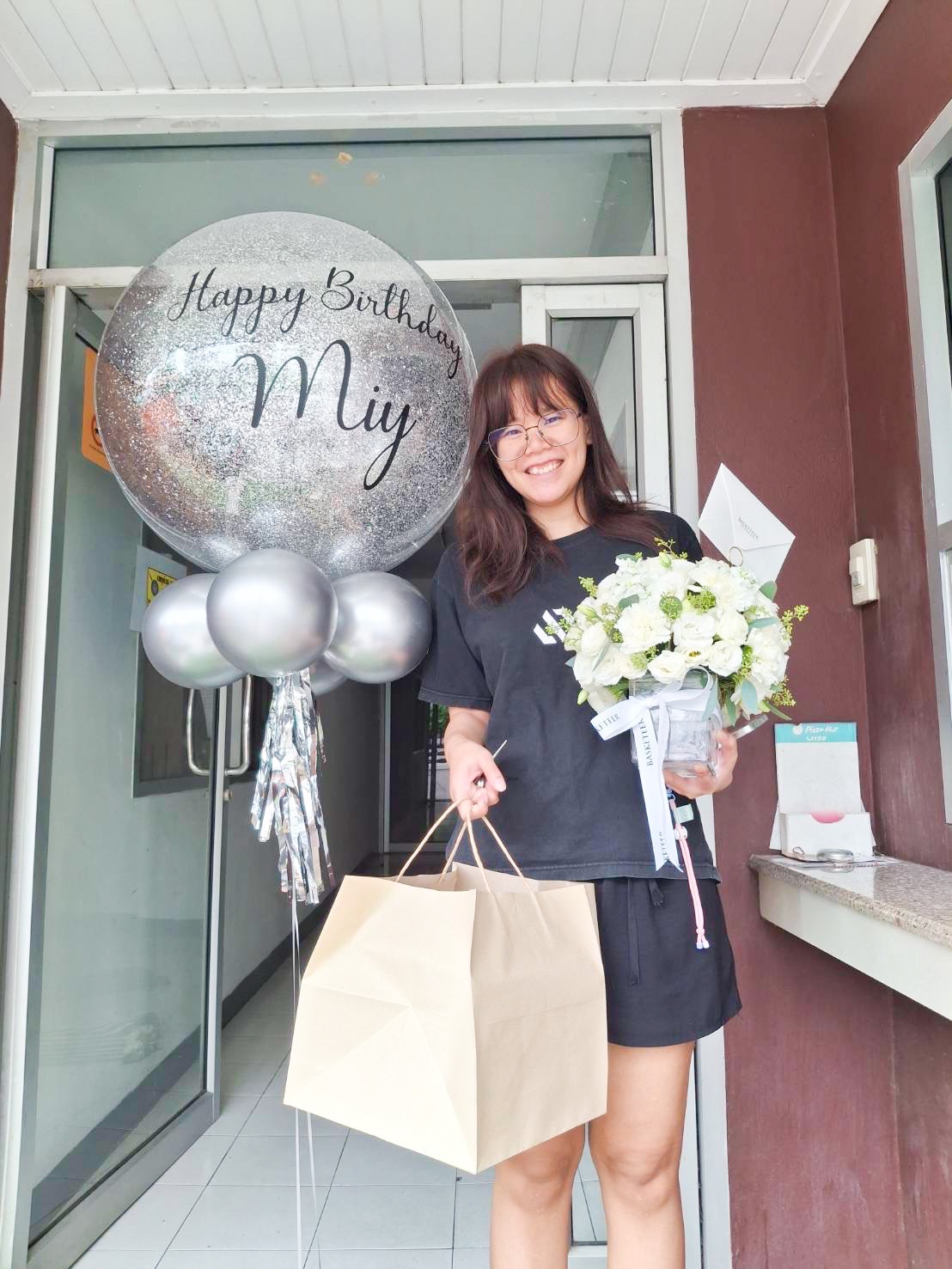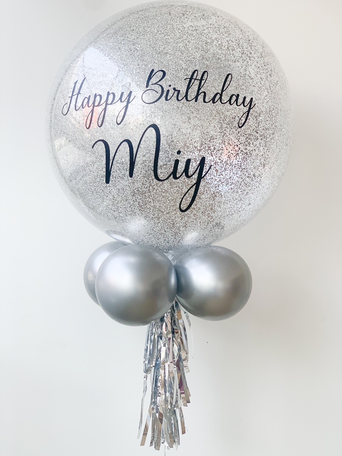 Personalised Birthday Balloon Make birthdays extra memorable with this clear balloon, filled with silver confetti and your custom “Happy Birthday” message. A perfect touch for gift hampers, party setups, or flower bouquets—designed to add sparkle and heartfelt charm to someone’s special day.