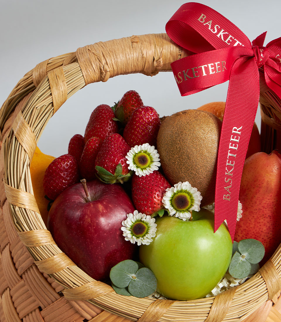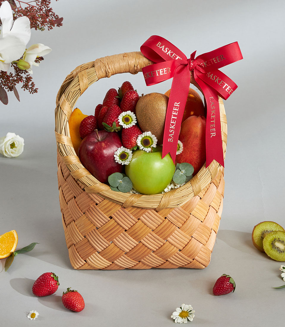 Premium Imported Fruit Basket – Sweet & Fresh Everyday Delight A charming handwoven fruit basket curated with a fresh selection of premium imported fruits from New Zealand, Taiwan, Australia, USA, Chile and Spain. Beautifully arranged with vibrant seasonal colors and finished with Basketeer’s signature ribbon, this delightful fruit set is perfect for sharing care and healthy wishes in an elegant way.