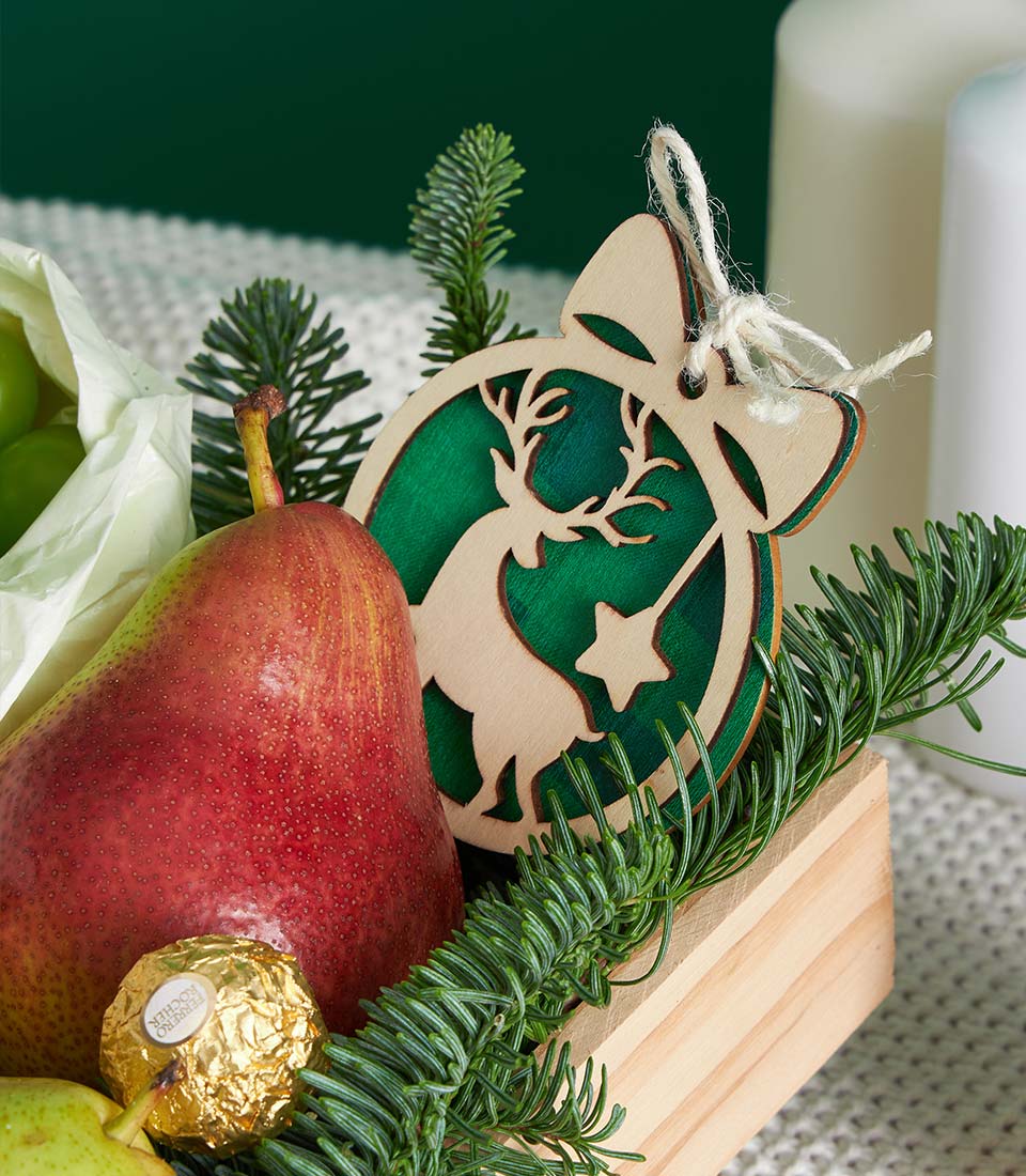 Luxury Imported Fruit & Chocolate Tray – Minimal Christmas Delight Edition A refined Christmas fruit tray featuring a curated selection of premium imported fruits and fine chocolates, elegantly arranged in a minimalist wooden tray. Accented with tasteful Christmas ornaments and Basketeer’s signature festive styling, this sophisticated gift expresses warmth, celebration, and understated holiday luxury.