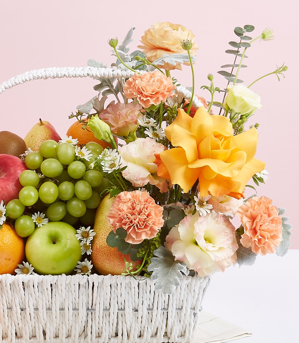 Sunny Yellow Flower & Fruit Gift Basket Radiate joy with our Sunshine Delight Fruit Basket — a vibrant harmony of premium fruits and elegant florals. Bursting with juicy apples, pears, oranges, and grapes, it's the perfect gift to brighten any occasion with freshness and charm.