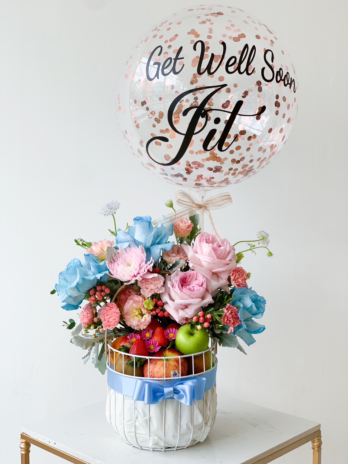Deluxe Fruit & Flower Gift for Mum: Delight your mom with a luxurious combination of fresh fruits and beautiful flowers. Perfect for her special day.