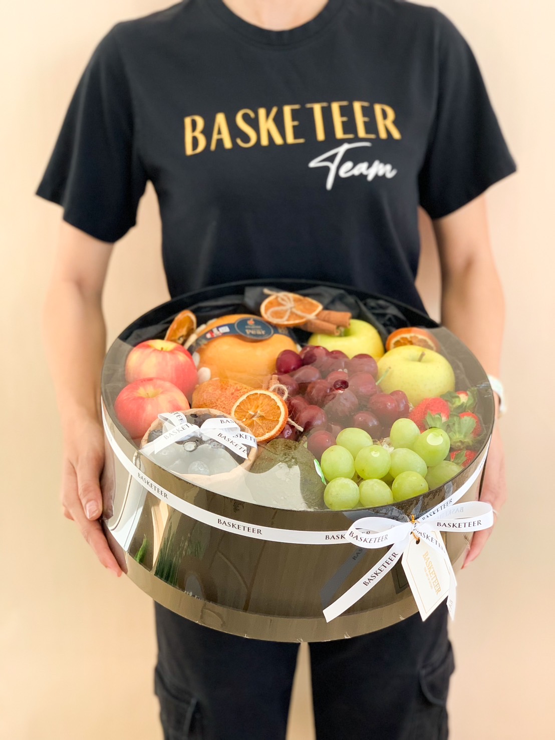 Discover our deluxe fruit basket filled with fresh melon, grapes, cherries, and berries. Ideal for celebrations or thoughtful gifts.
