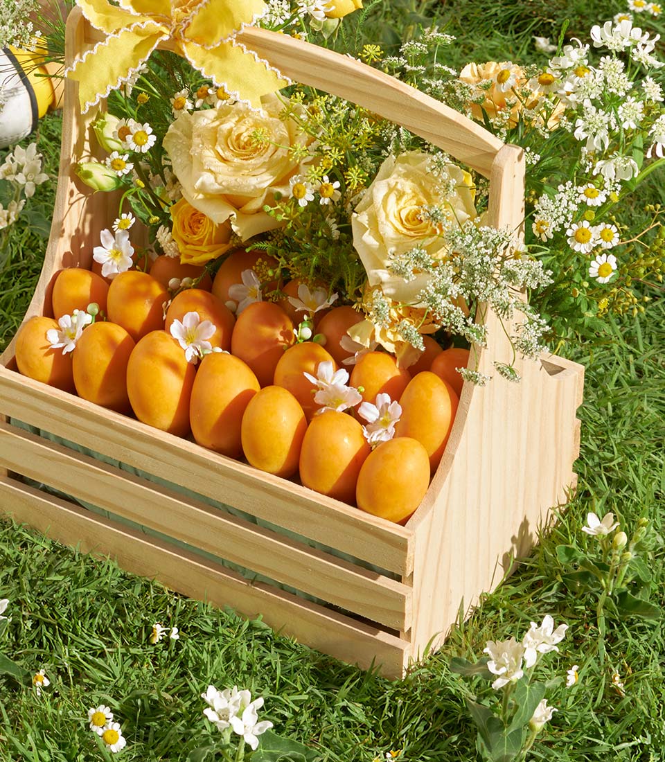Premium Thai Mayongchid Basket – Seasonal Elegance in Wooden Basket A refined Thai summer basket featuring premium mayongchids from Nakhon Nayok, known for their smooth texture and naturally sweet flavour. Presented in a tall wooden basket with delicate floral accents, this elegant arrangement highlights the beauty of the season—perfect for thoughtful and sophisticated gifting.