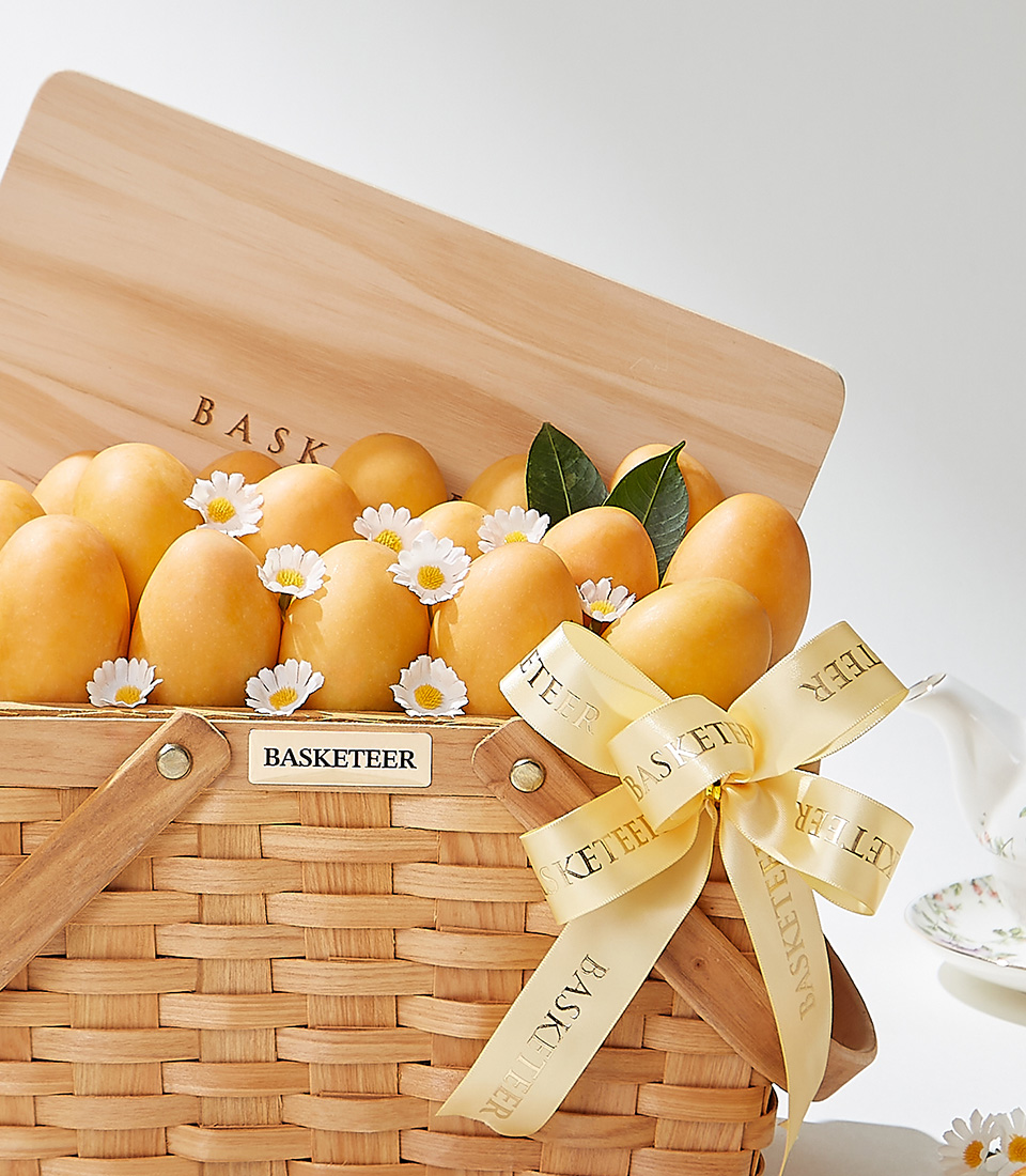 Royal Golden Mayongchid Basket Mayongchid, also known as Marian Plum or Maprang, is a rare and seasonal fruit cherished for its honey-like sweetness and smooth, juicy texture. This handcrafted gift basket contains the finest selection of Mayongchids, carefully sourced from Nakhon Nayok, Thailand – the most renowned region for this exquisite fruit.