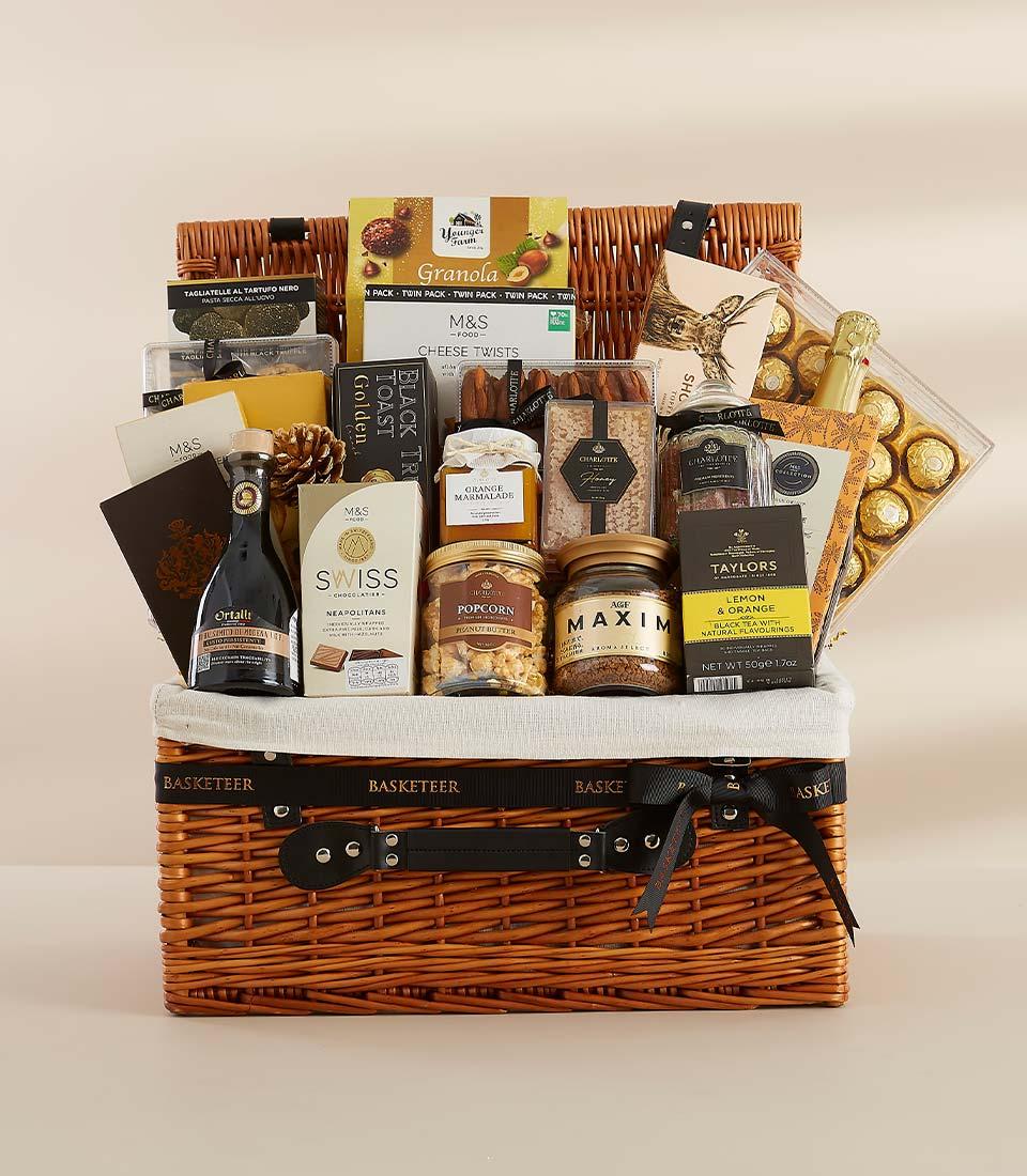 Luxury Flavors Gourmet Gift Basket Delight in the ultimate indulgence with our Connoisseur Hamper, filled with an array of gourmet treats like rich shortbread, luxurious chocolate, and a bottle of sparkling champagne. Perfect for any celebration, this hamper offers a taste of elegance and festivity in every bite.
