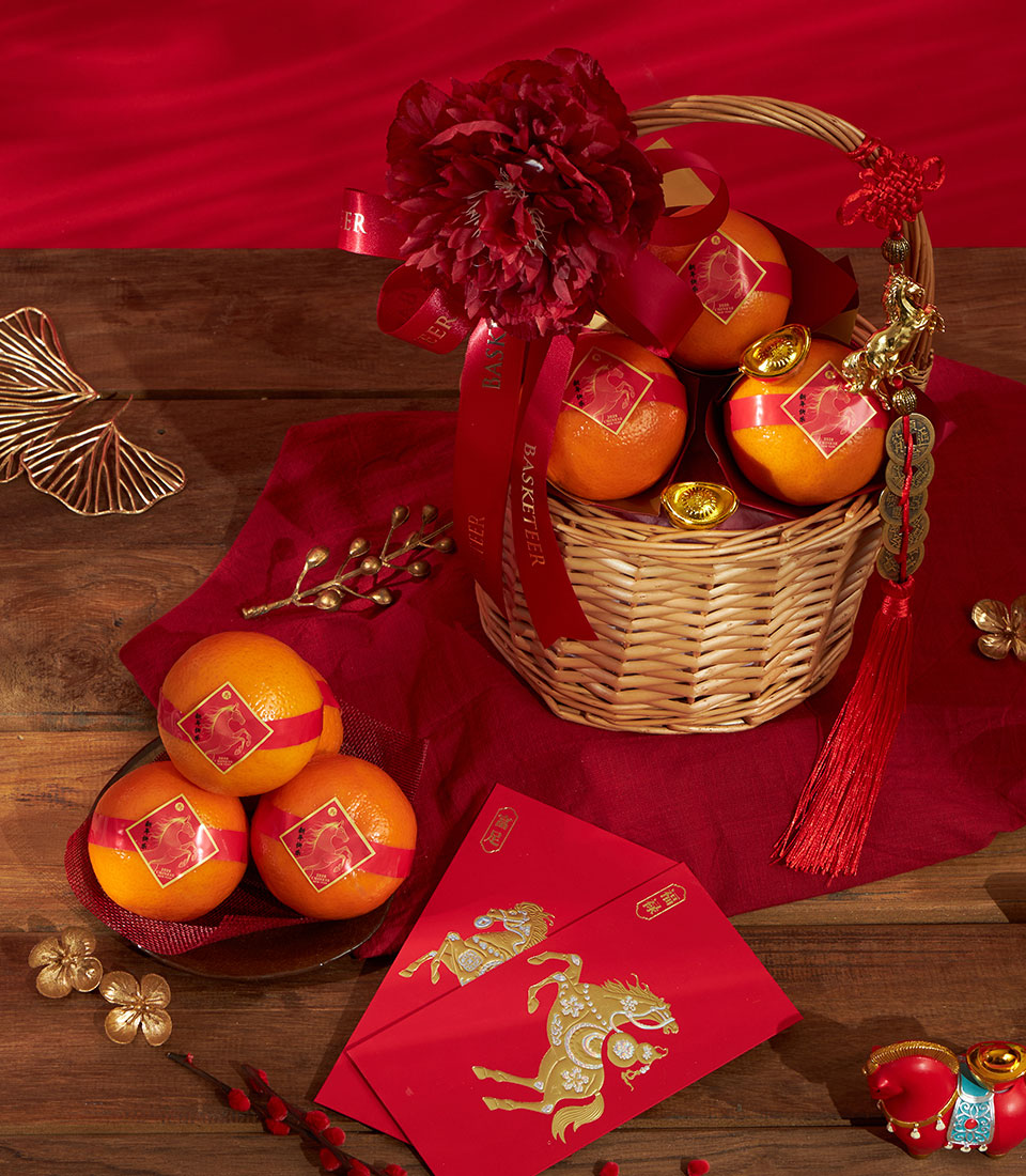 Festive Chinese New Year gift featuring premium imported Taiwanese mandarin oranges, symbolizing prosperity and good fortune.