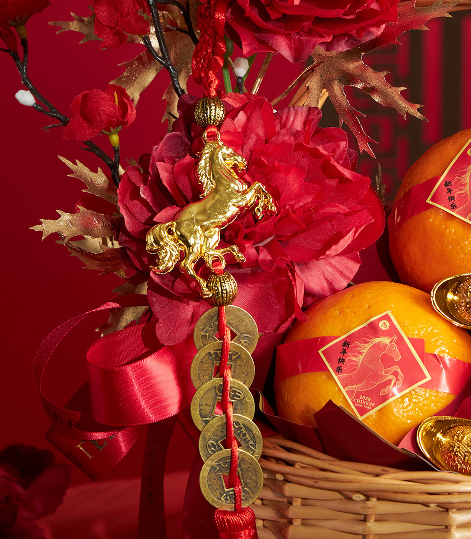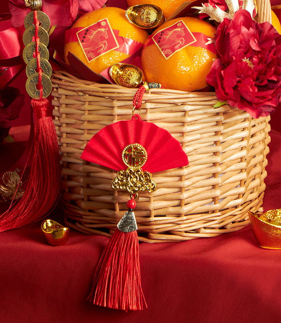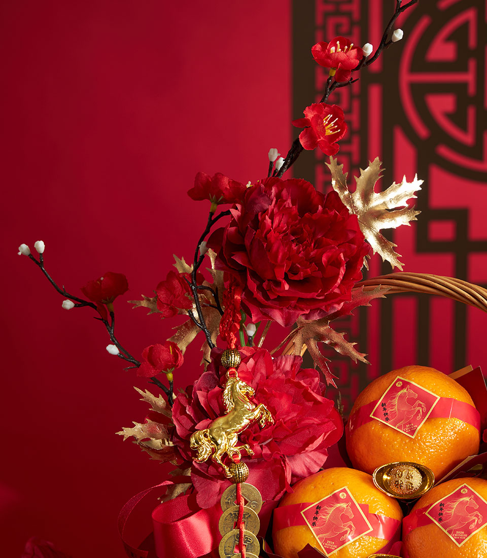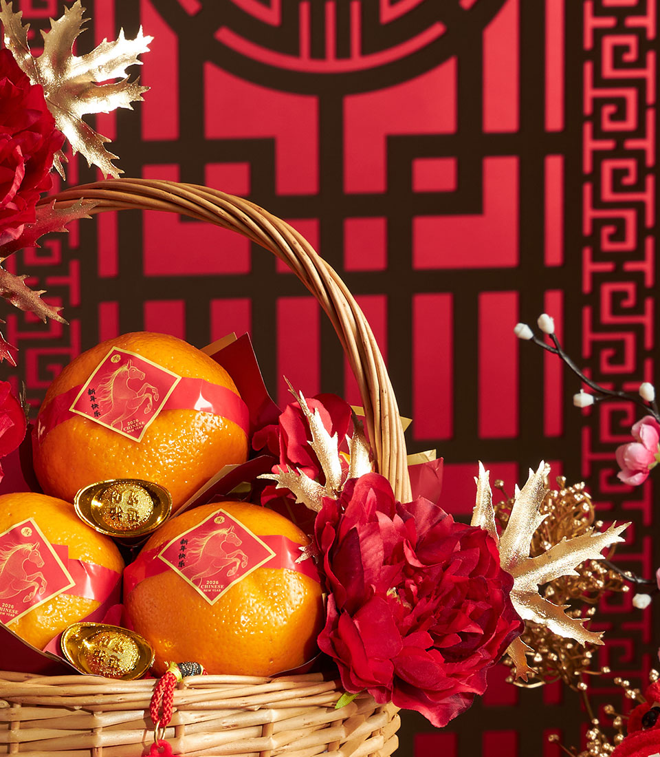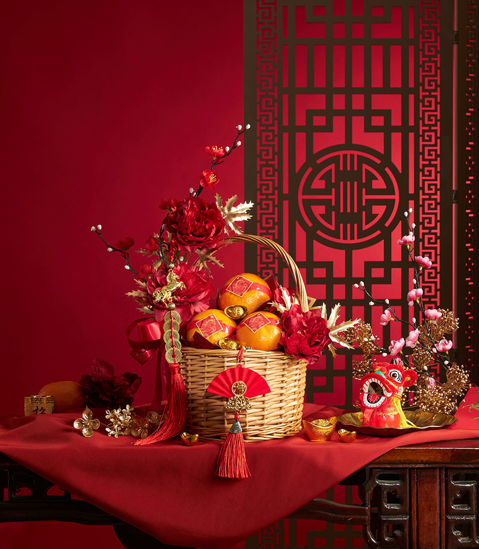 A refined Chinese New Year gift basket featuring premium Taiwanese mandarin oranges, elegantly arranged to symbolize prosperity, abundance, and festive blessings.