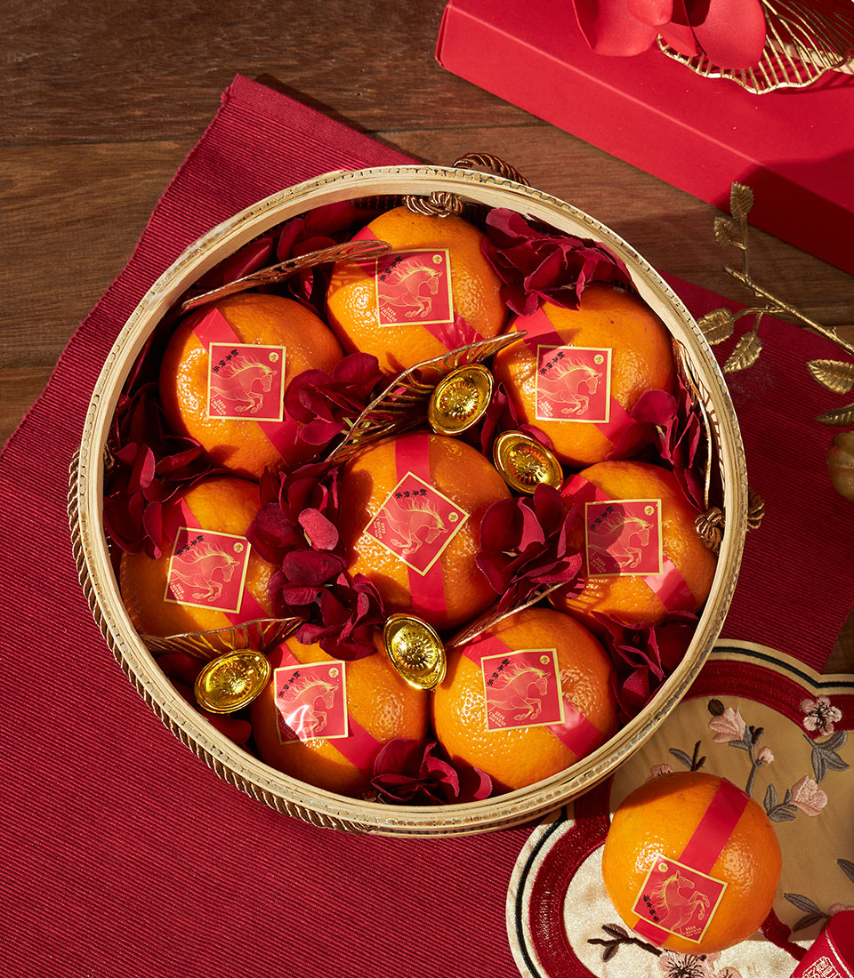 ***Mandarin sizes and decorative elements may vary slightly depending on seasonal availability while maintaining the same premium quality, auspicious meaning, and overall presentation.